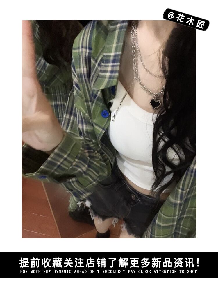 スタイルグリーン格子柄シャツ オータムルーズトップス ストリート 秋物 10/5 秋冬 オータム ウインター ナチュラル mi4619853262894