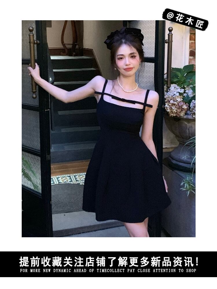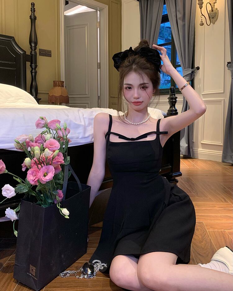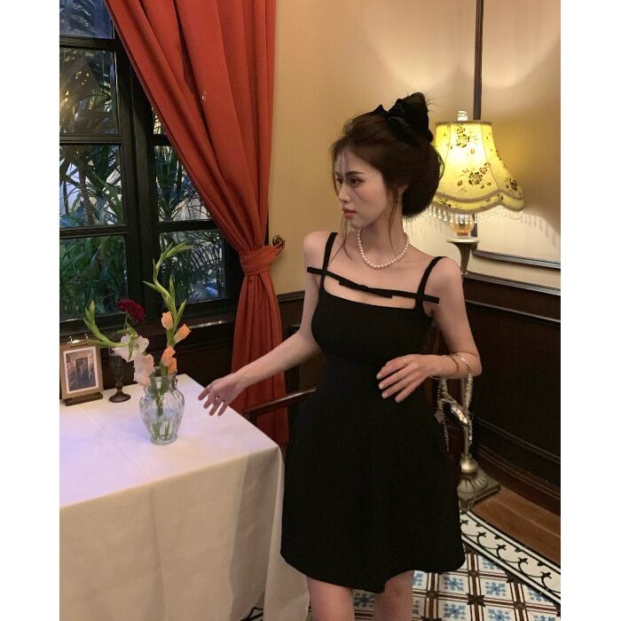 リボンブラックドレス サマーウェスト薄手ショートスカート 夏物 10/5 秋冬 オータム ウインター ナチュラル mi4679067529810