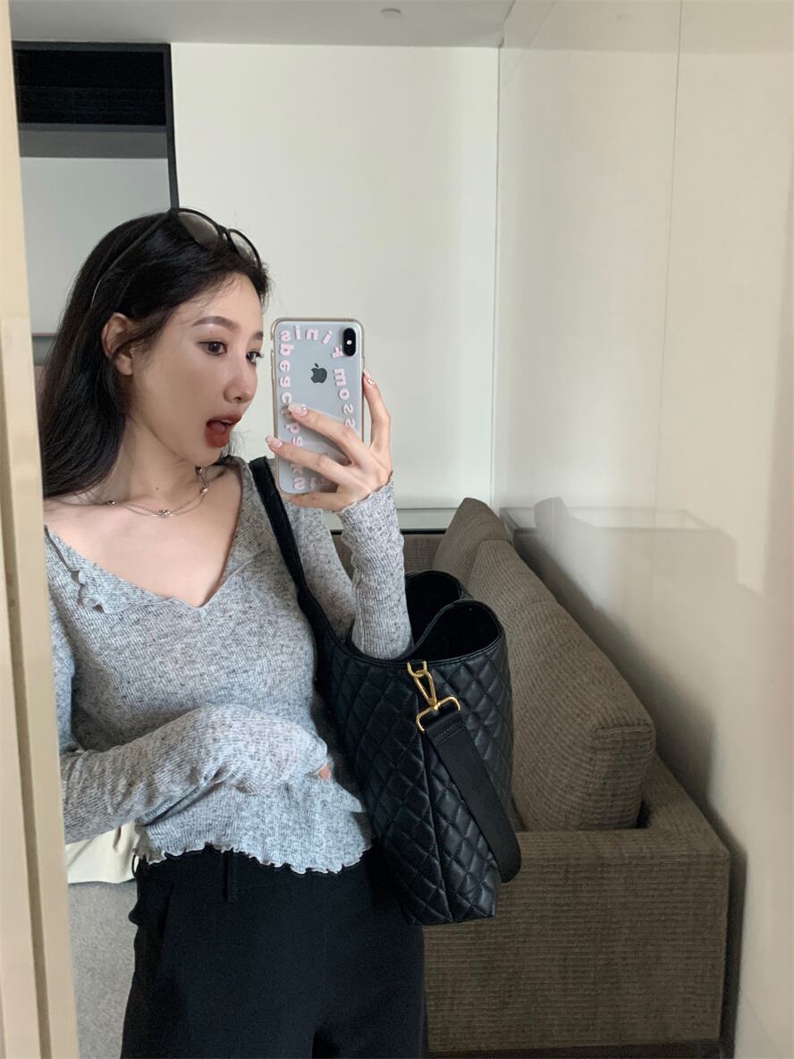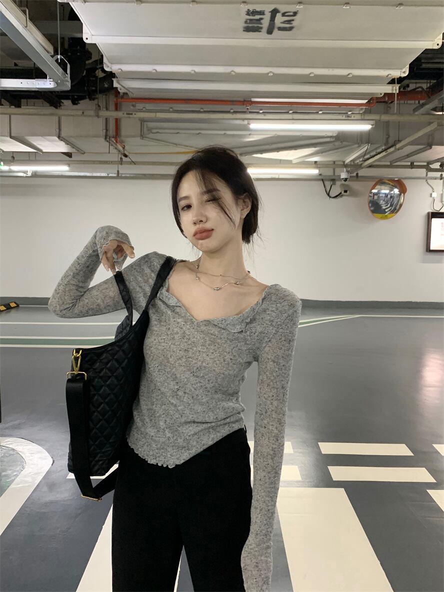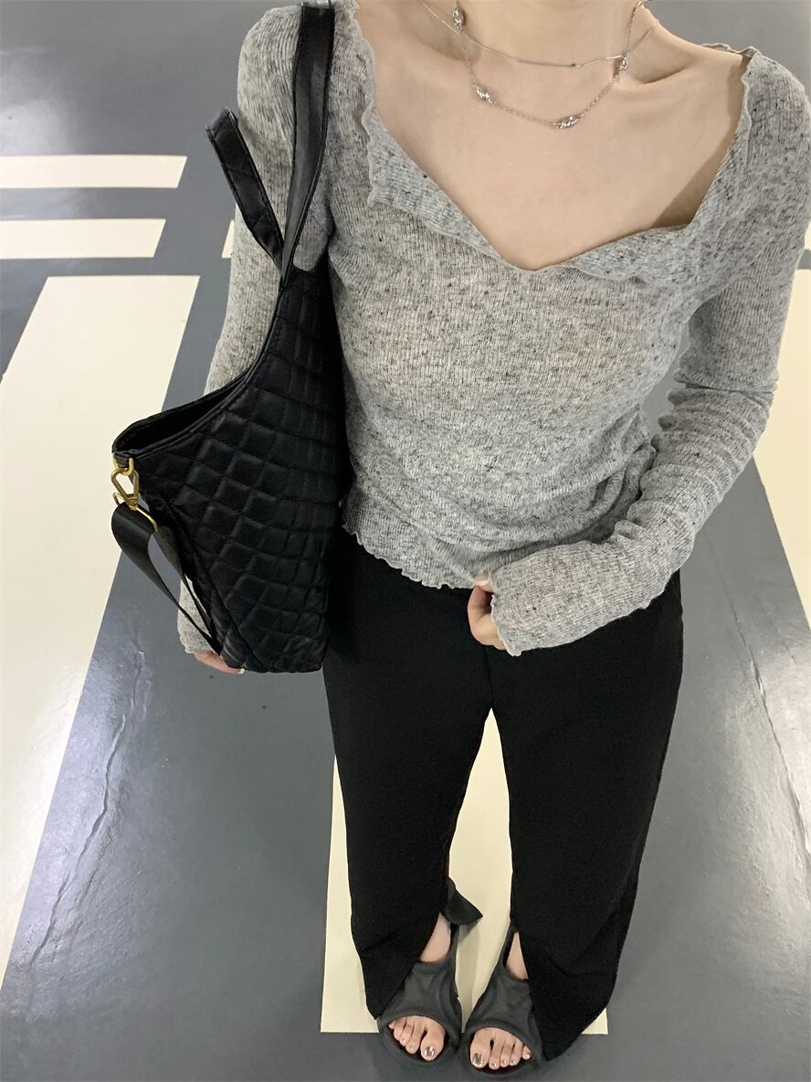 スタイルソリッド カラーVネックTシャツ オータムスリムショートトップス ロング 秋物 ソリッドカラー 10/5 秋冬 オータム ウインター ナチュラル mi4664204131253