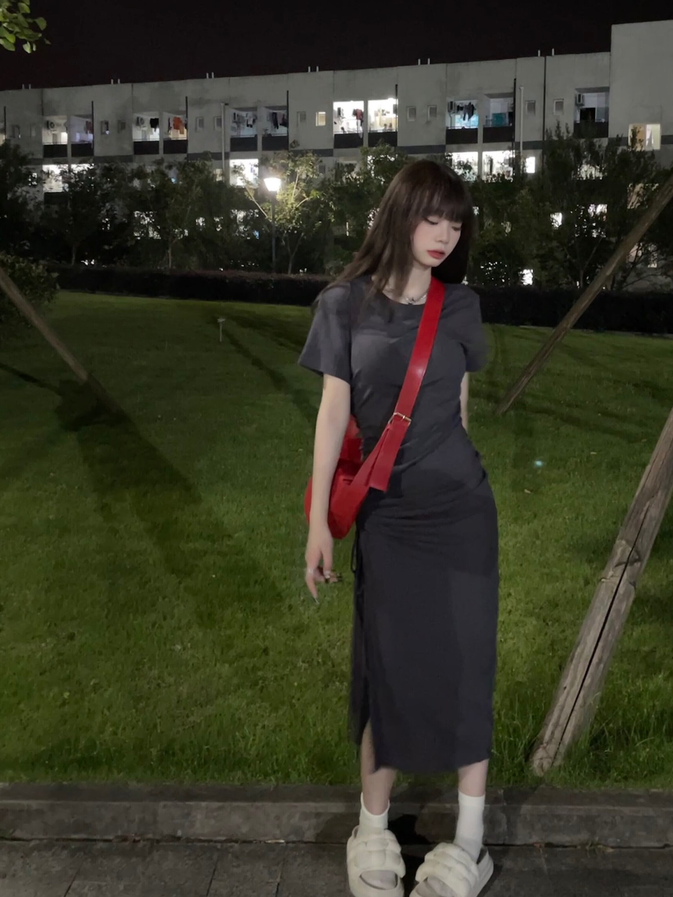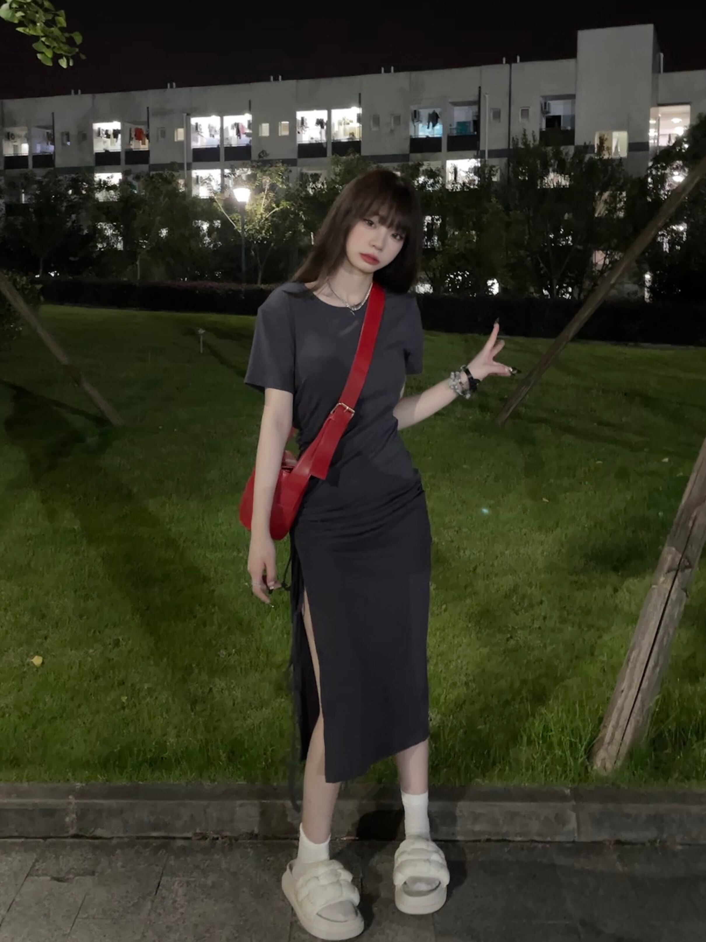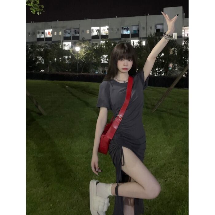 ウェストギャザーTシャツ ドレス サマースリムスリットスカート 夏物 10/5 秋冬 オータム ウインター ナチュラル mi4623726415821