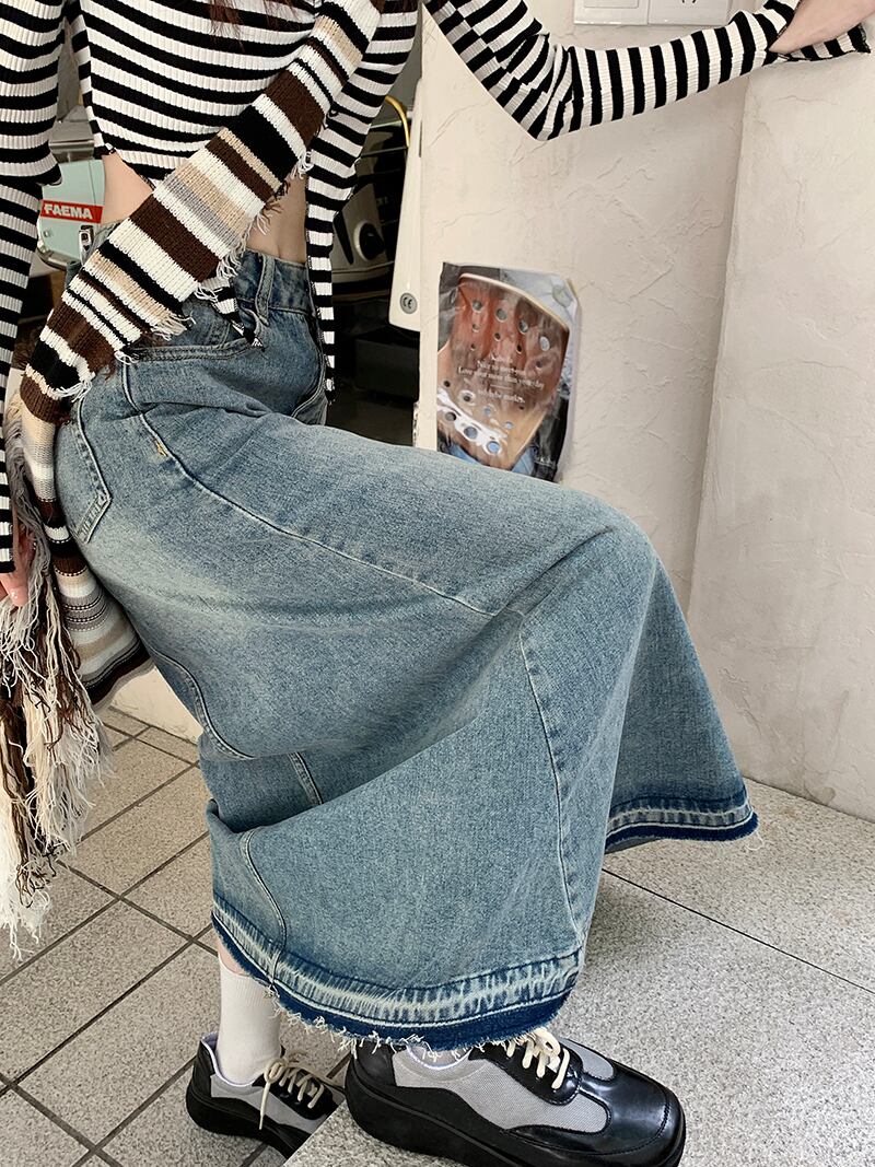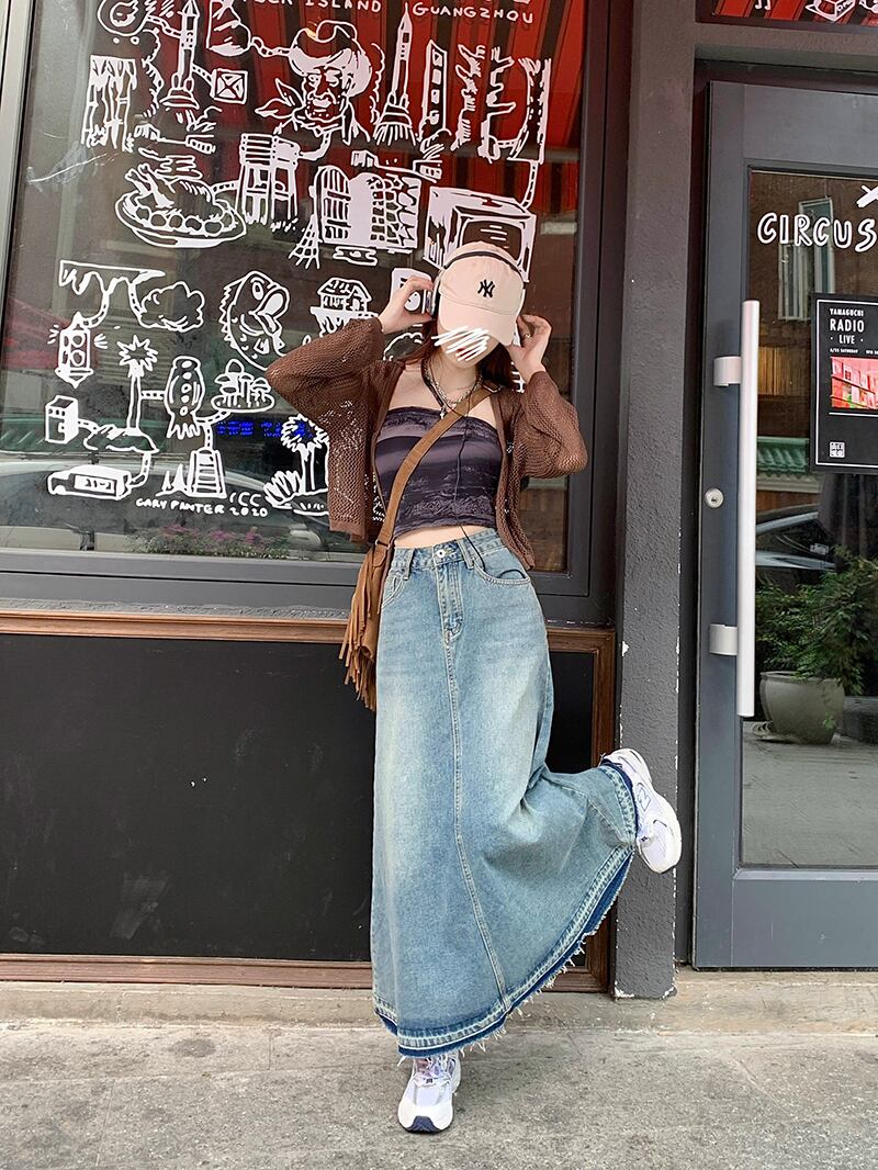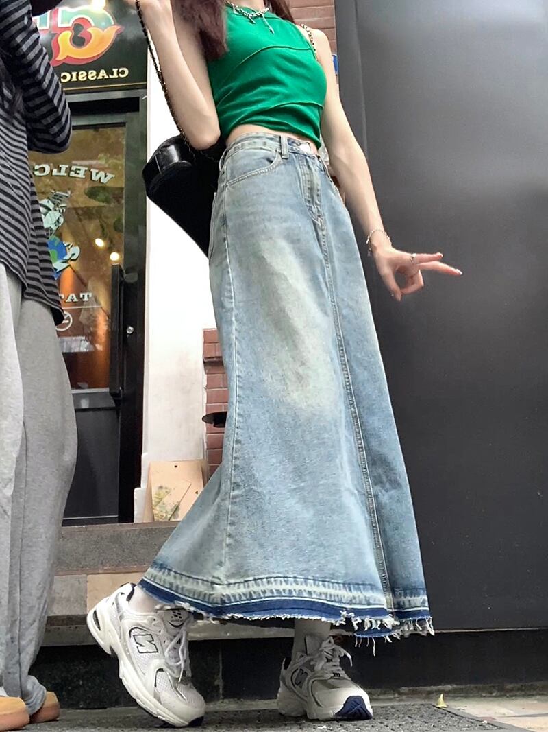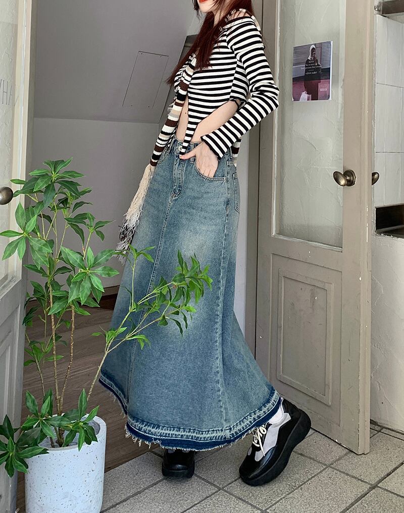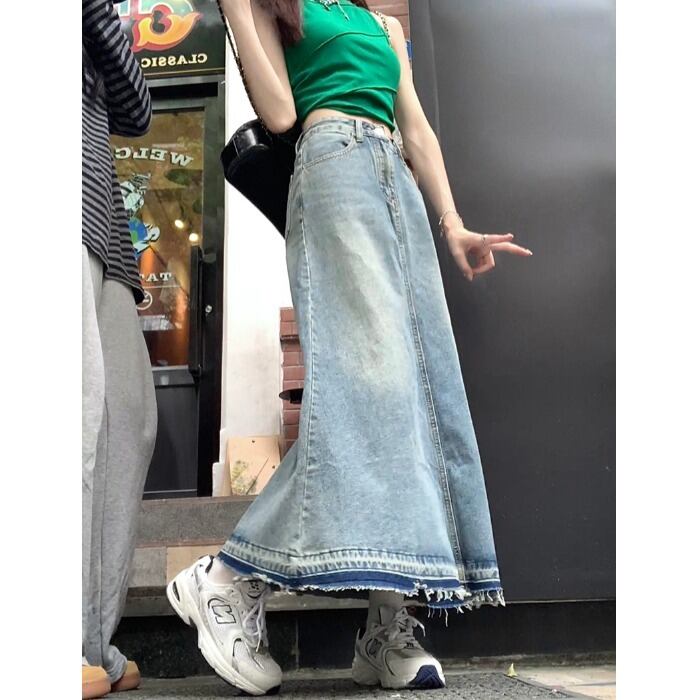 ハイウェストウェスト薄手スカート サマーカジュアルスリムAライン 夏物 10/5 秋冬 オータム ウインター ナチュラル mi4617191013821