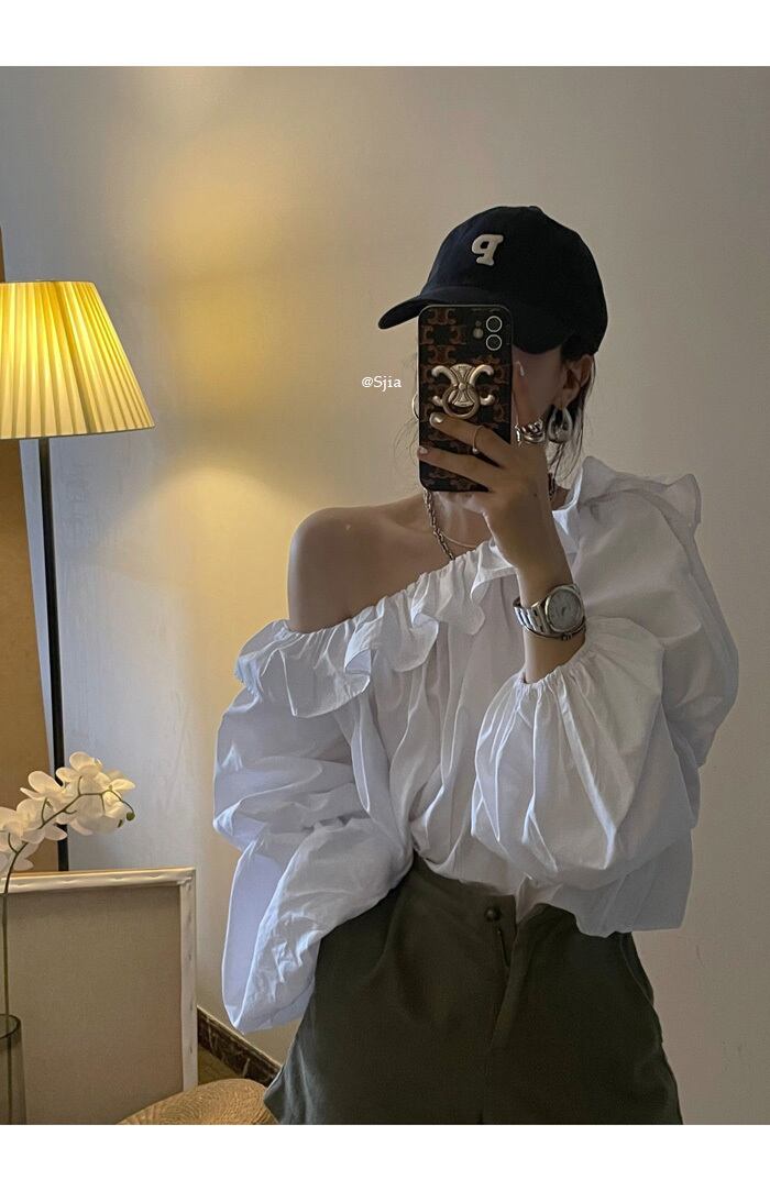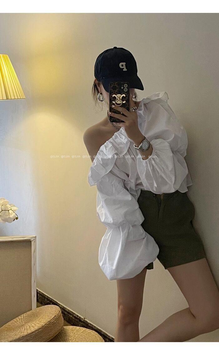 スリーブホワイトシャツ オータムショートルーズトップス ランタンスリーブ 秋物 10/5 秋冬 オータム ウインター ナチュラル mi4618731509116