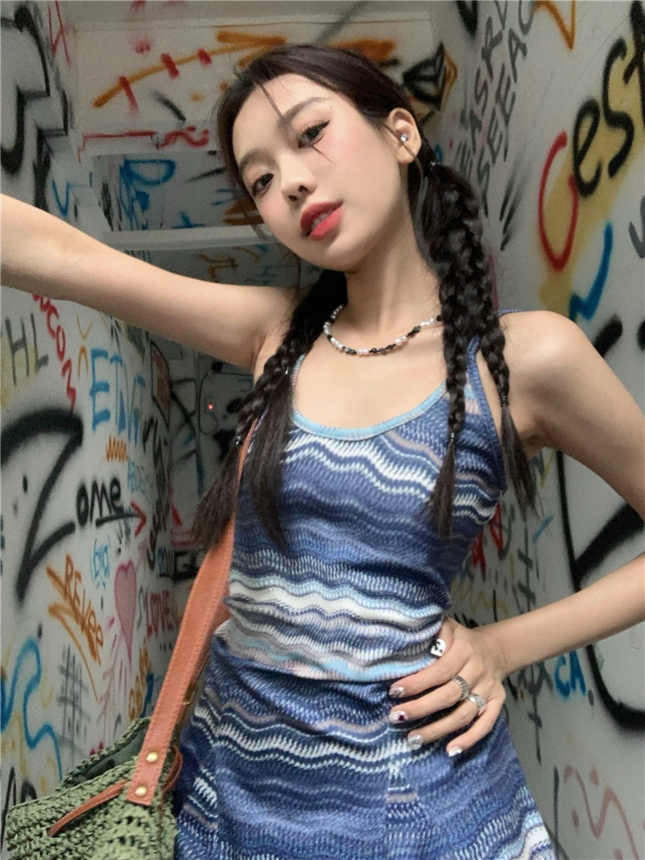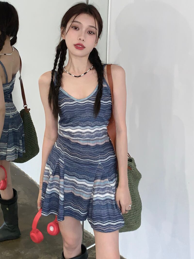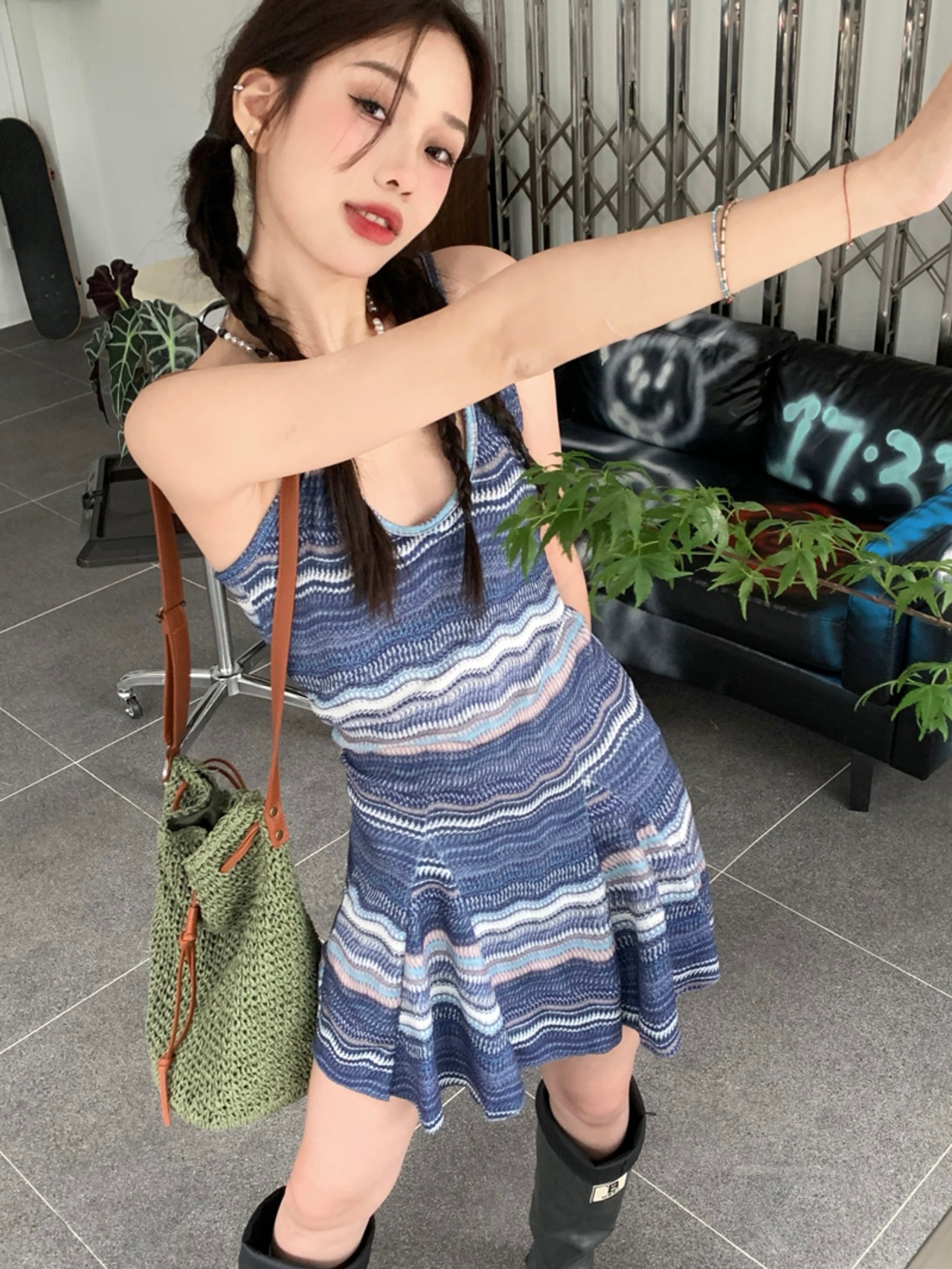スタンダードストライプドレス サマーウェスト薄手Aラインスカート レトロ 夏物 10/5 秋冬 オータム ウインター ナチュラル mi4621638838482