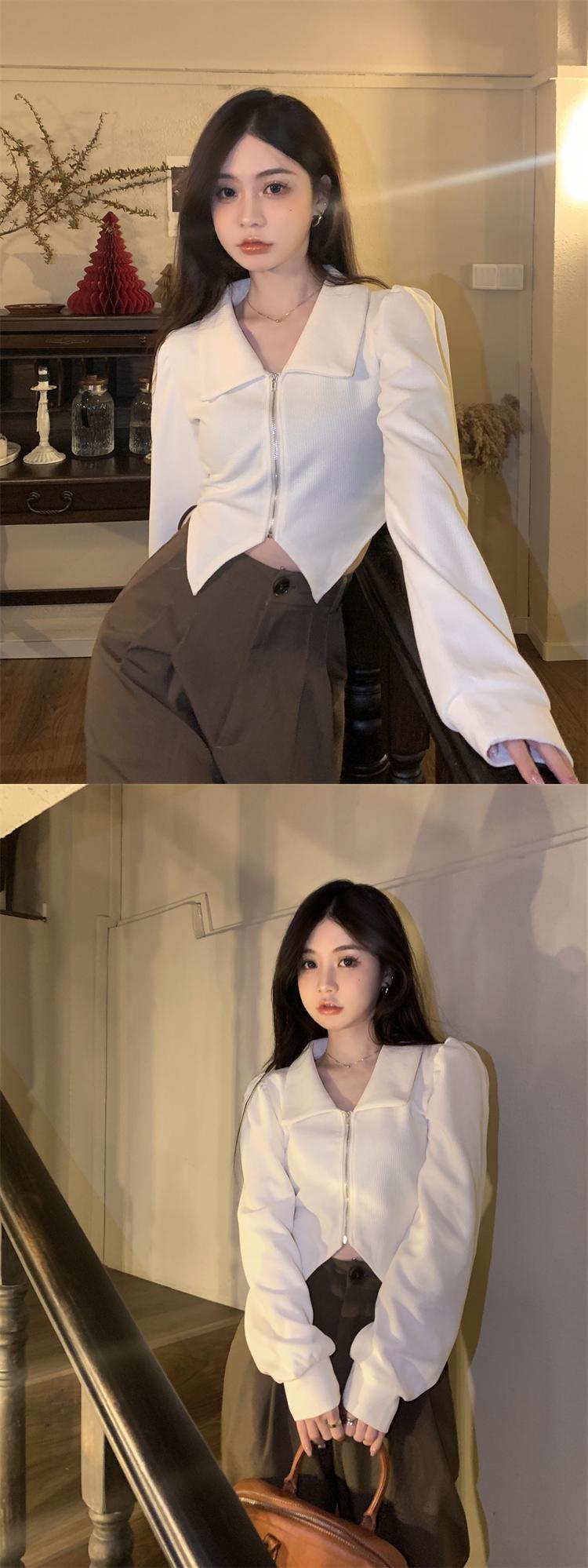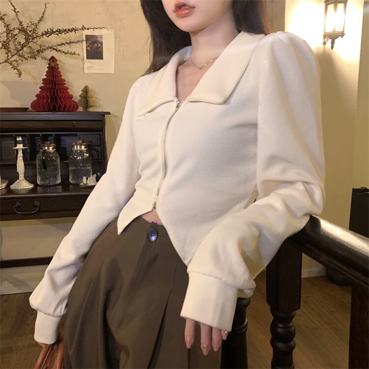ジッパーTシャツ オータムショートトップス ロング 秋物 10/5 秋冬 オータム ウインター ナチュラル mi4621675129436