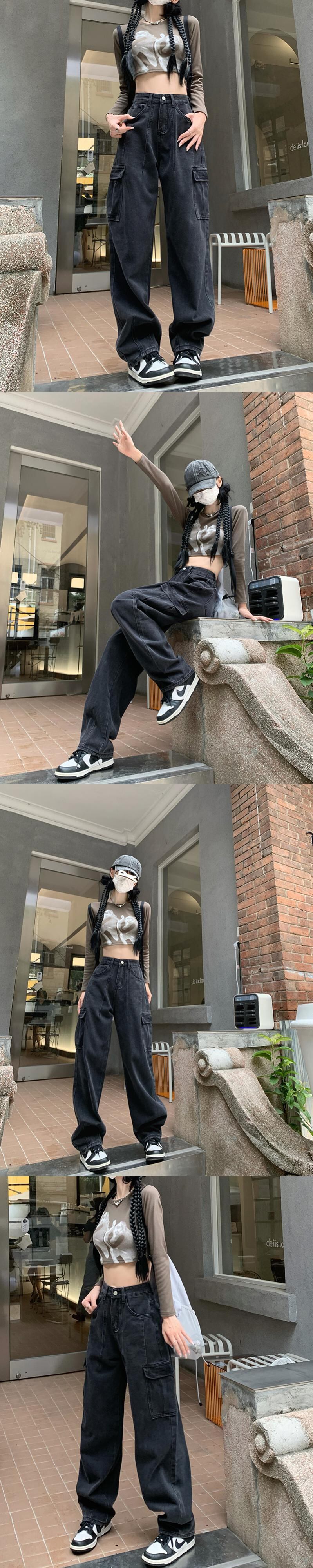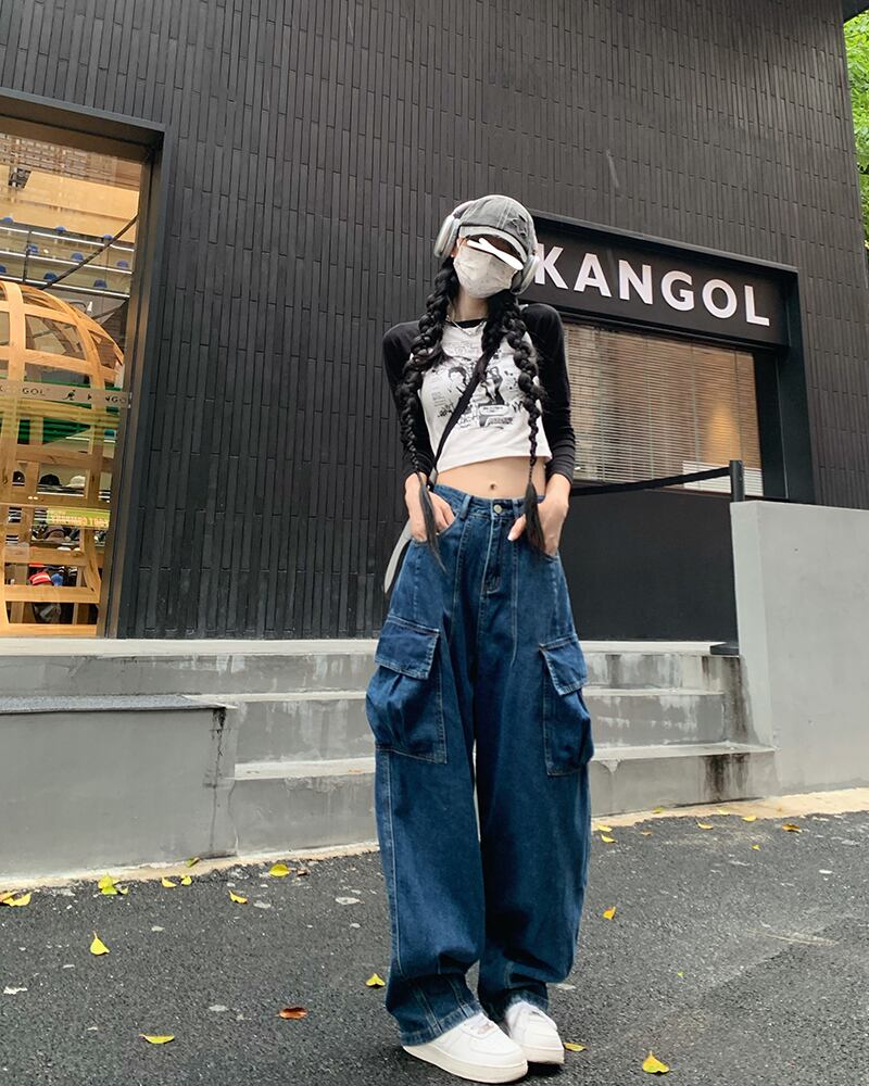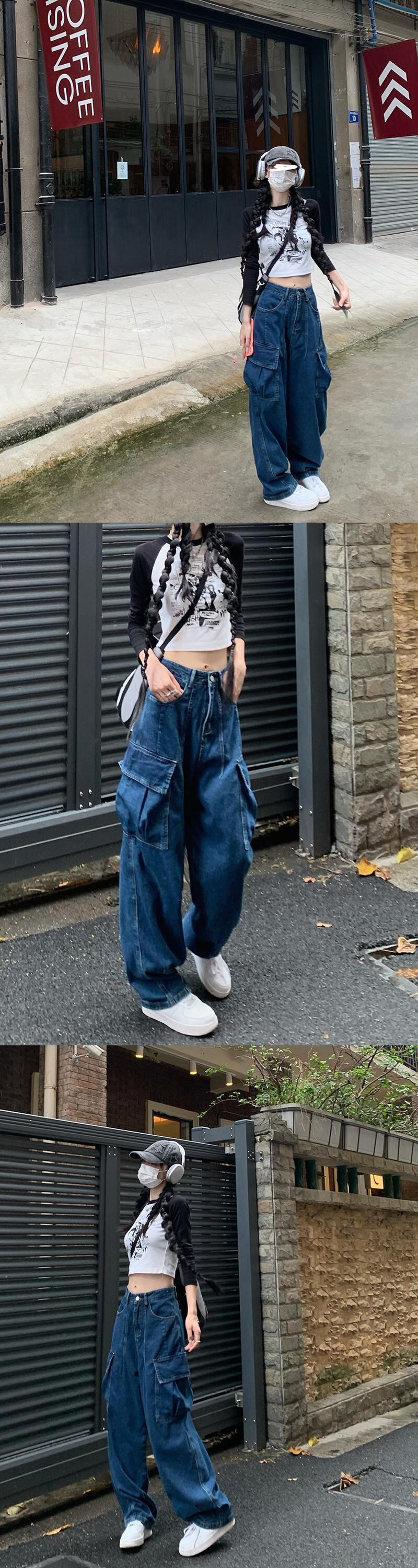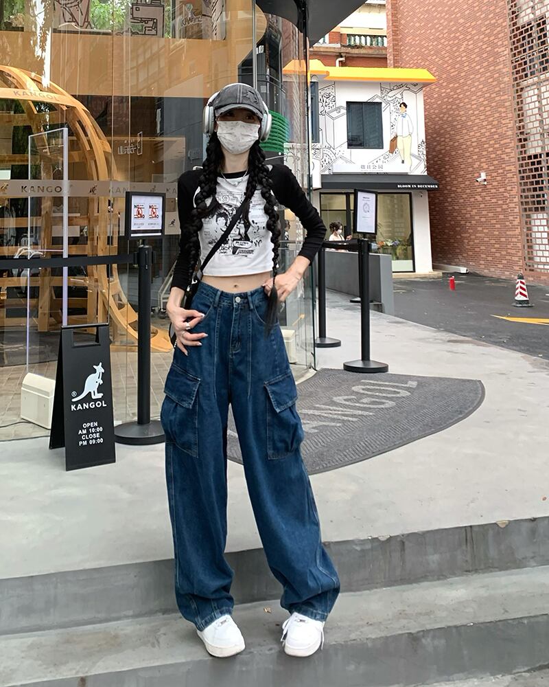 スタンダードポケットハイウェストウェストジーンズ オータムルーズオーバーオール レトロ ストリート 秋物 10/5 秋冬 オータム ウインター ナチュラル mi4641355240100