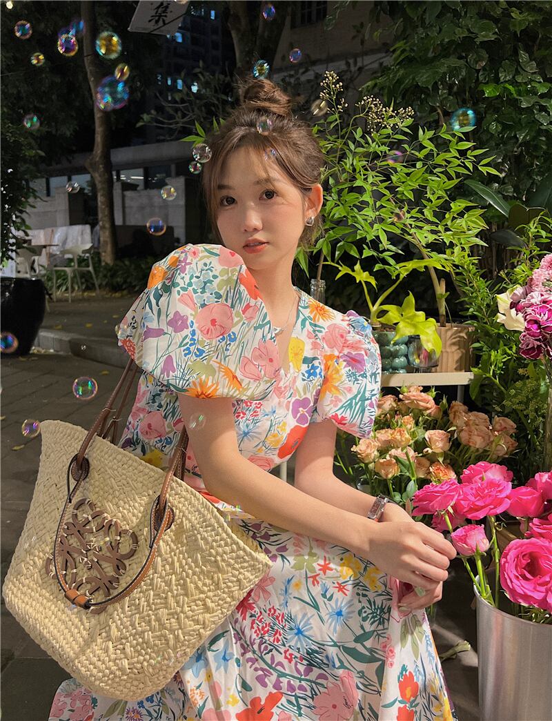 スタンダードVネックスリーブフローラルドレス サマーウェストスリムスカート レトロ 夏物 花柄 10/5 秋冬 オータム ウインター ナチュラル mi4637595017596