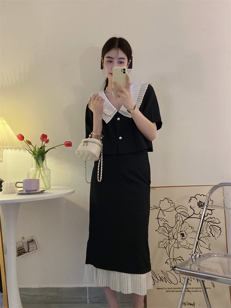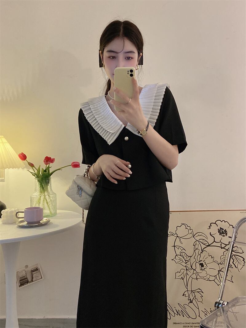色:ブラックトップシングルピース,黒のハーフスカートワンピース