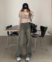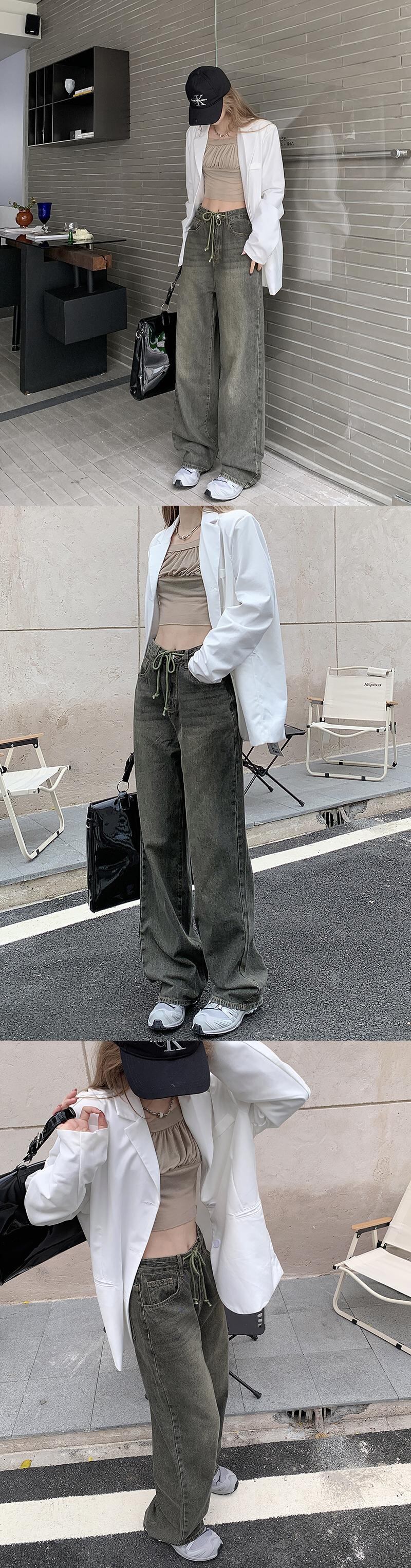 スタンダードギャザージーンズ オータムハイウェストウェストパンツ レトロ ストリート 秋物 10/5 秋冬 オータム ウインター ナチュラル mi4638658806503
