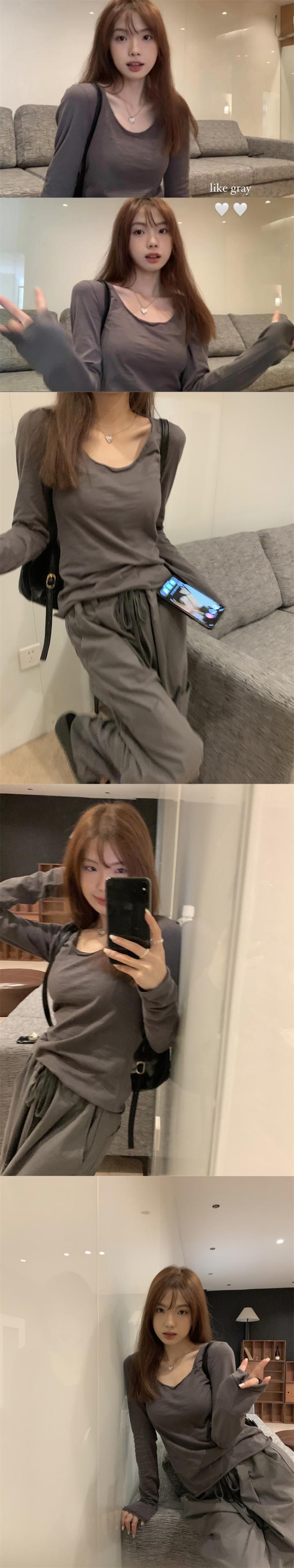 Tシャツ オータムスリムフィット薄手トップス ロング 秋物 10/5 秋冬 オータム ウインター ナチュラル mi4654512915150