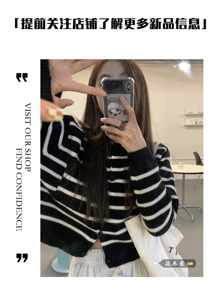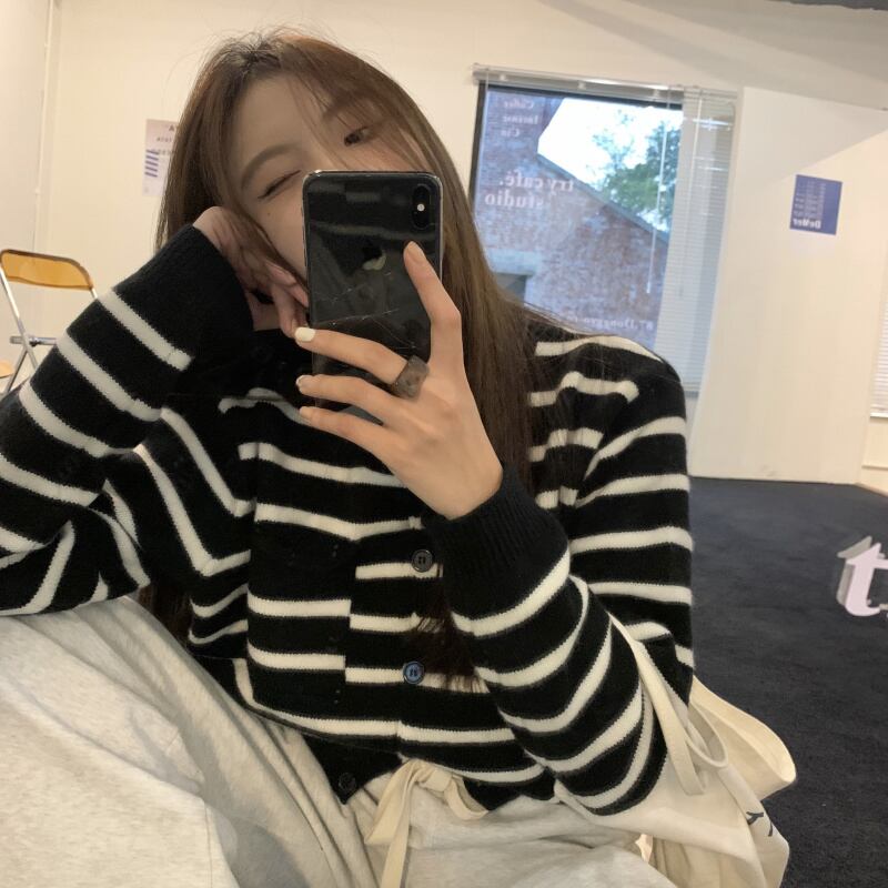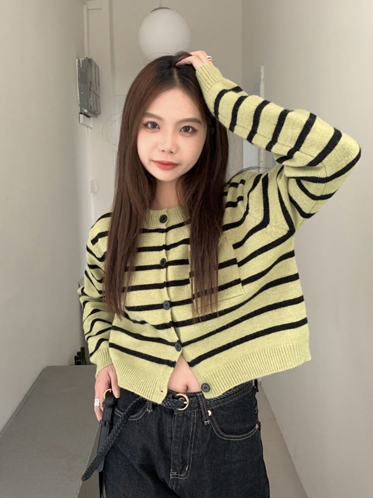カラーストライプセーター ジャケット オータムショートルーズニットカーディガントップス ロング 秋物 10/5 秋冬 オータム ウインター ナチュラル mi4652712436084