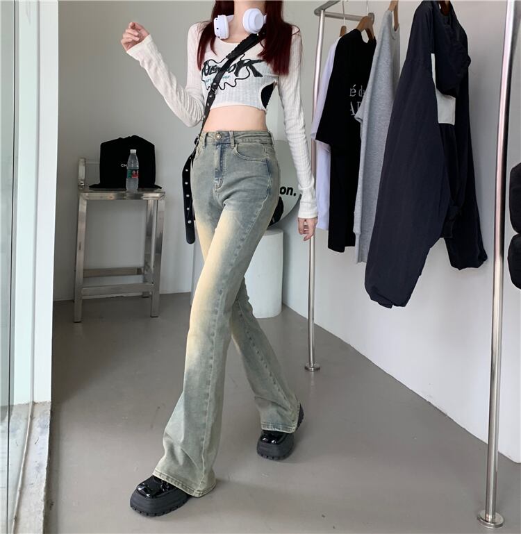 スタンダードホワイトパンツ オータムスリムハイウェストウェストジーンズ レッド レトロ ストリート 秋物 10/5 秋冬 オータム ウインター ナチュラル mi4624319881296