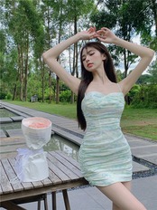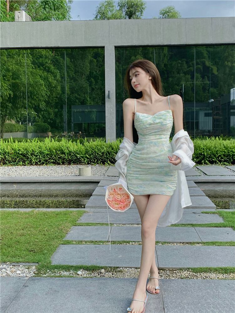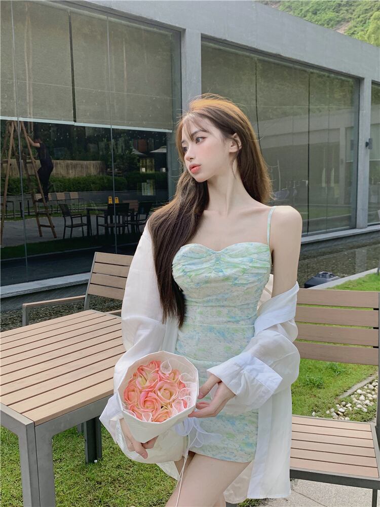 グリーンフローラルドレス サマープリーツウェストスカート 夏物 花柄 10/5 秋冬 オータム ウインター ナチュラル mi4613421307291