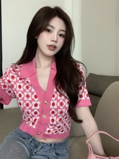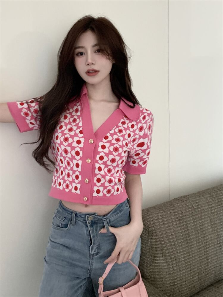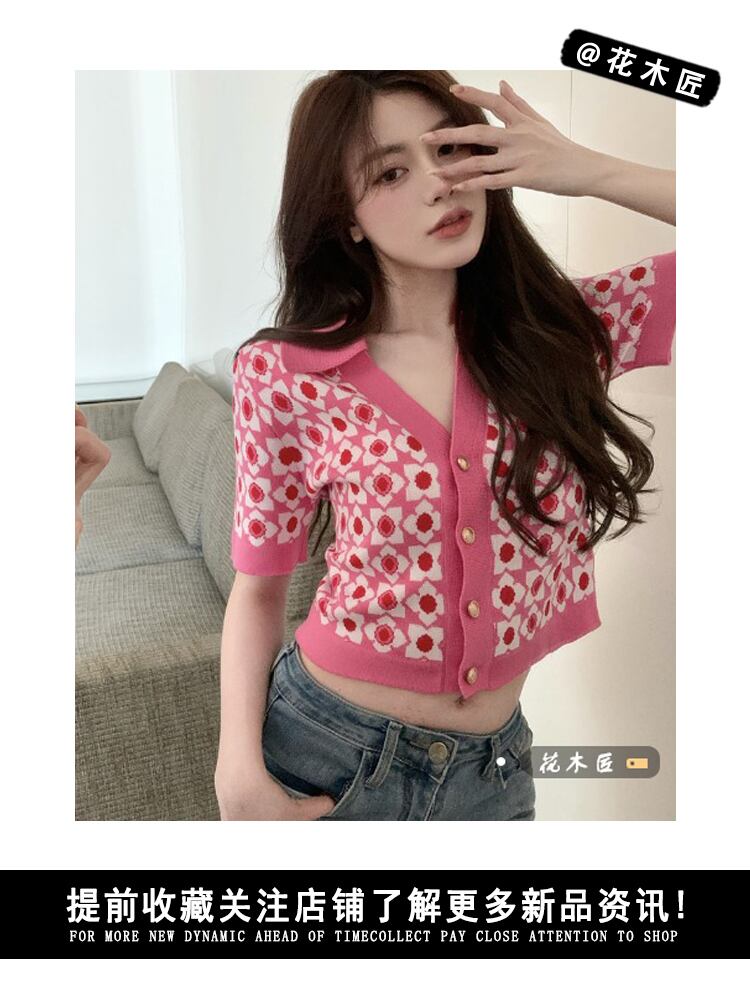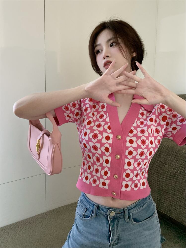 スタンダードスタイルVネックショートカラーニットセーター オータムスリムカーディガントップス レトロ 秋物 10/5 秋冬 オータム ウインター ナチュラル mi4645437314627