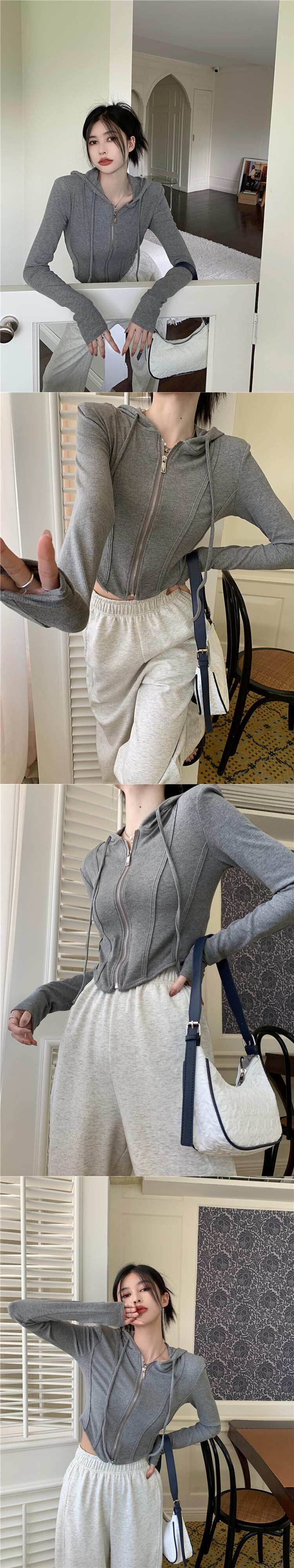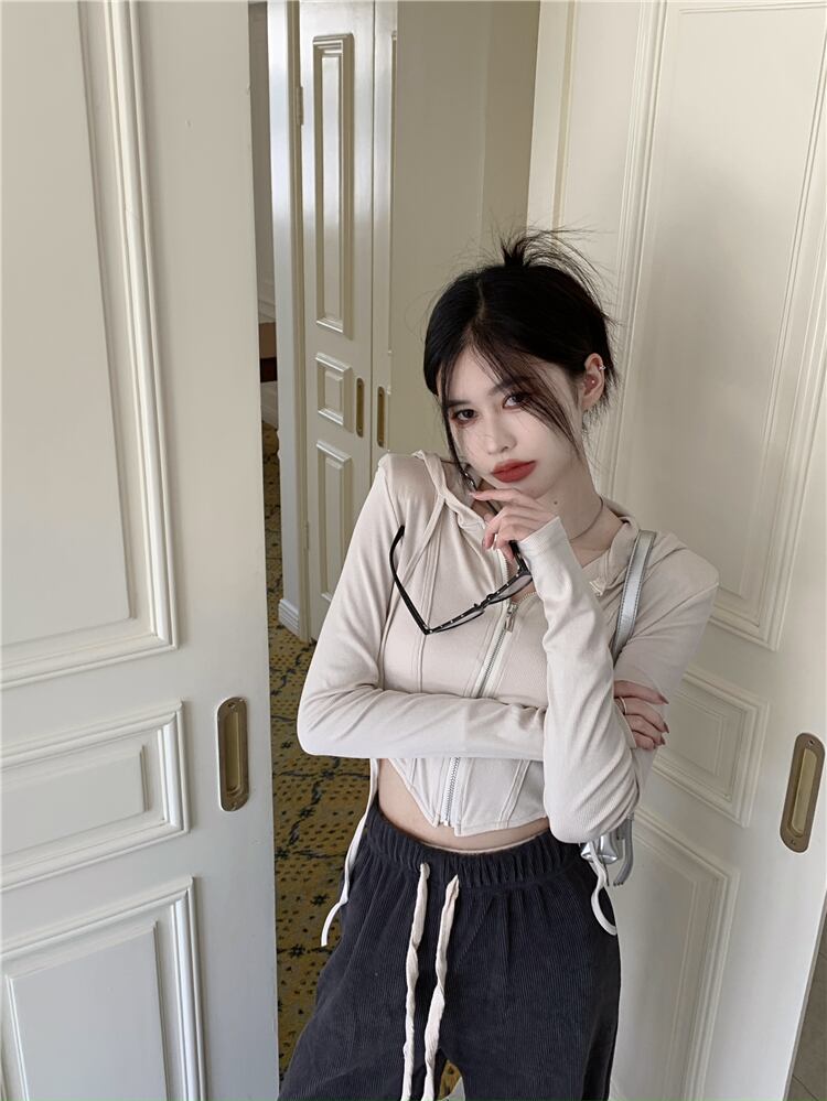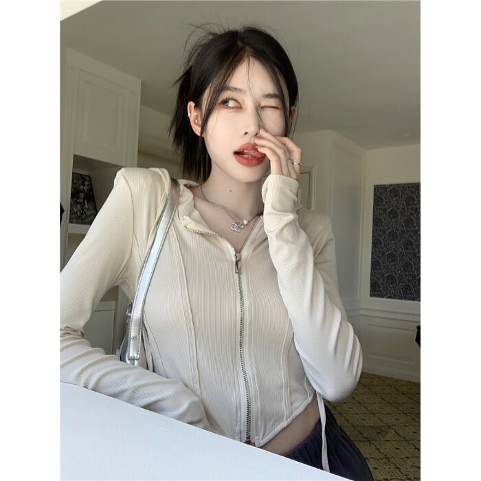 スリムジッパーフードジャケット オータムショートトップス 秋物 10/5 秋冬 オータム ウインター ナチュラル mi4638147889246