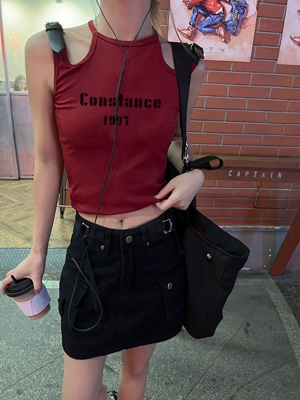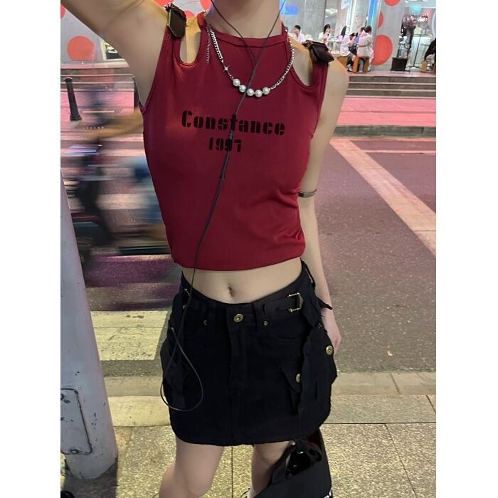 プリント柄サマーノースリーブショートトップス 夏物 10/5 秋冬 オータム ウインター ナチュラル mi4628834875337