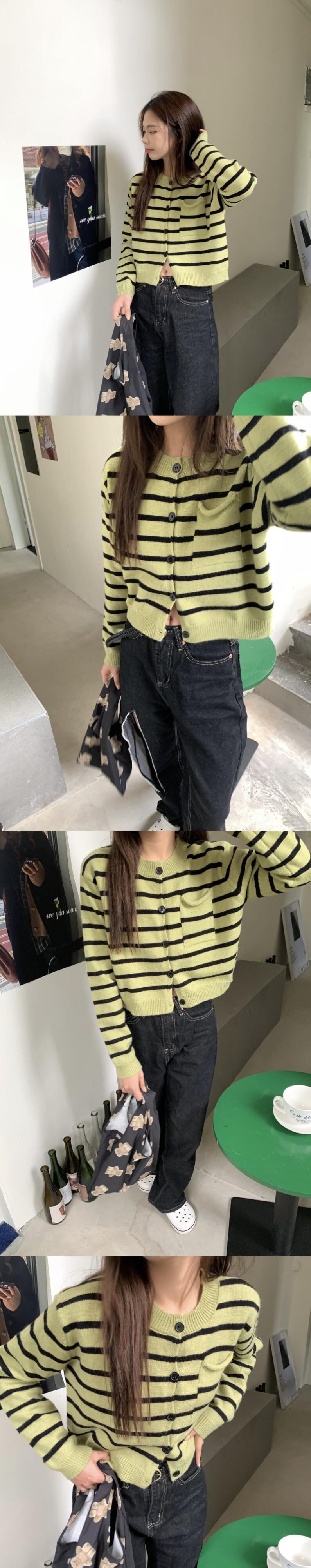 グリーンストライプセーター オータムニットカーディガンショートトップス ストリート 秋物 10/5 秋冬 オータム ウインター ナチュラル mi4635996115140