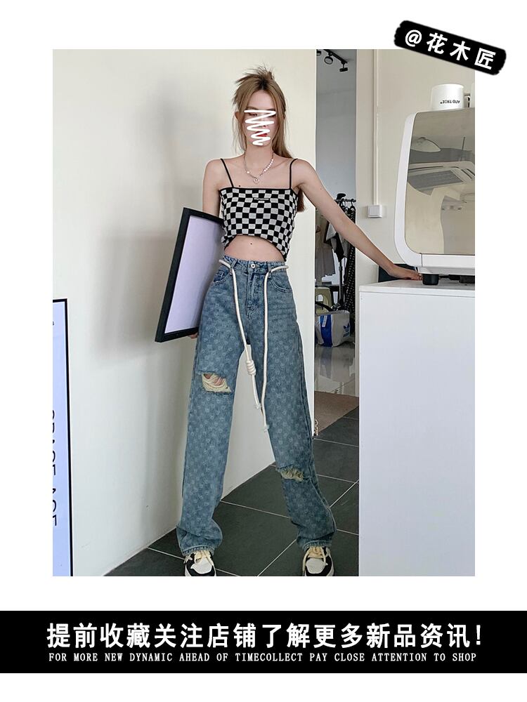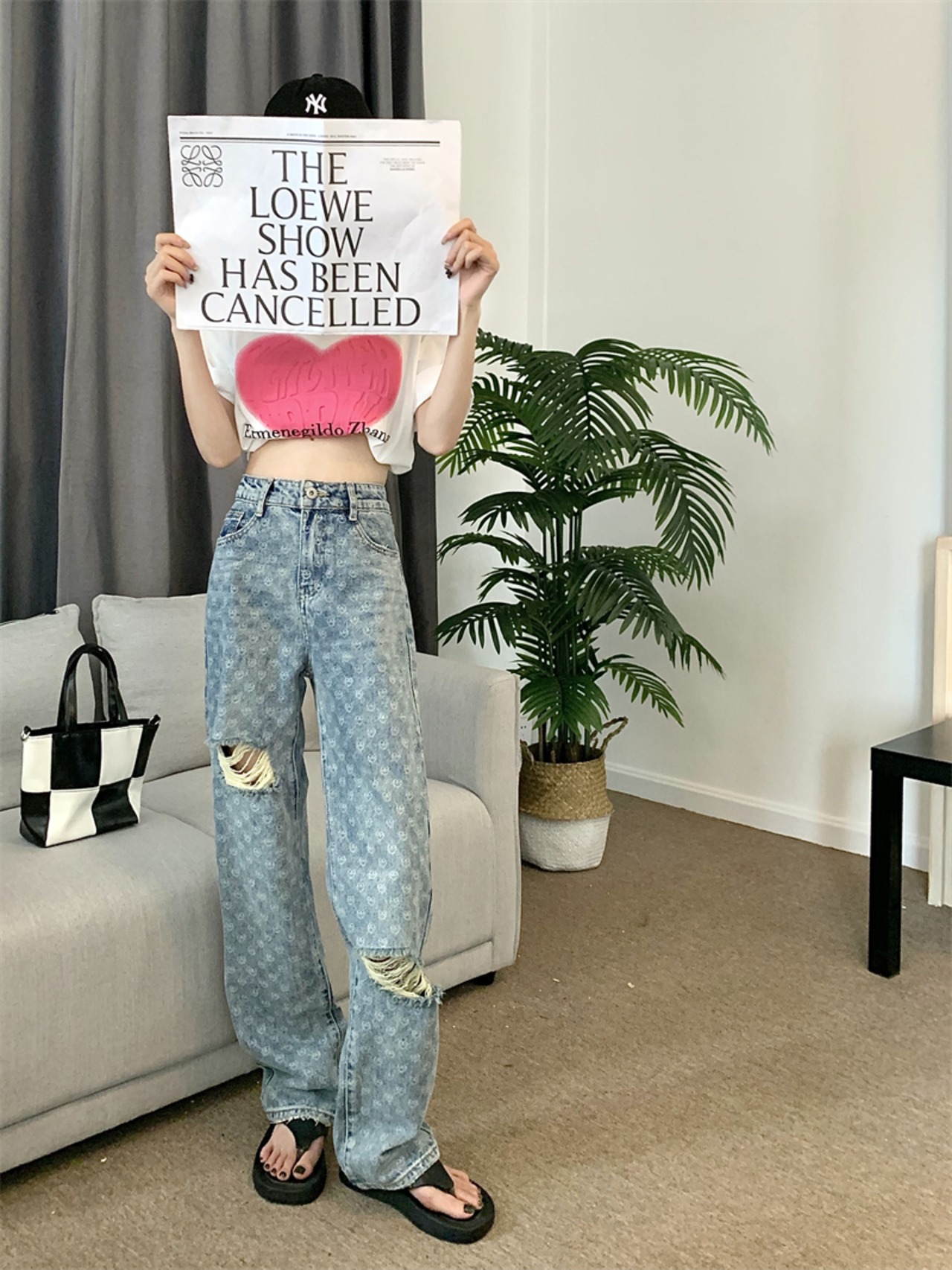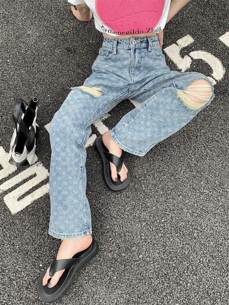 スタンダードジャカードジーンズ オータムハイウェストウェストスリムルーズワイドレッグパンツ レトロ 秋物 ワイドパンツ 10/5 秋冬 オータム ウインター ナチュラル mi4625332003275