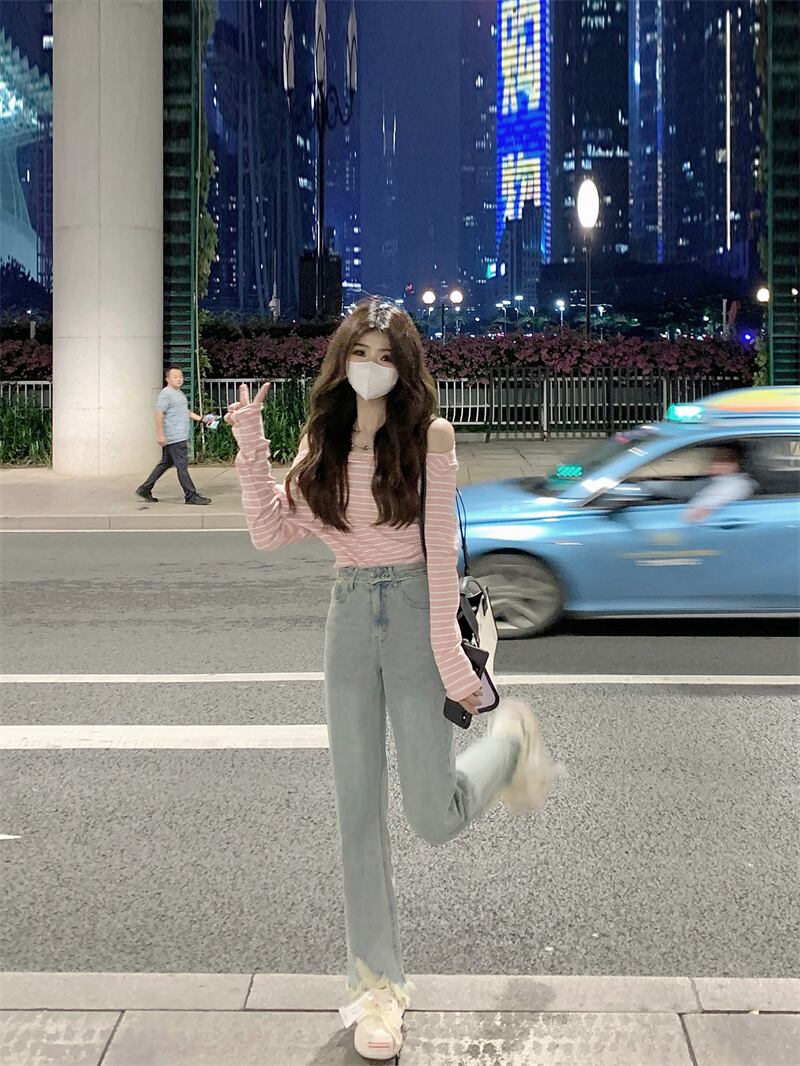 スタイルTシャツ オータムカラーストライプスリムトップス ロング 大人ガーリー スウィート キュート カジュアル 秋物 10/5 秋冬 オータム ウインター ナチュラル mi4645023858511