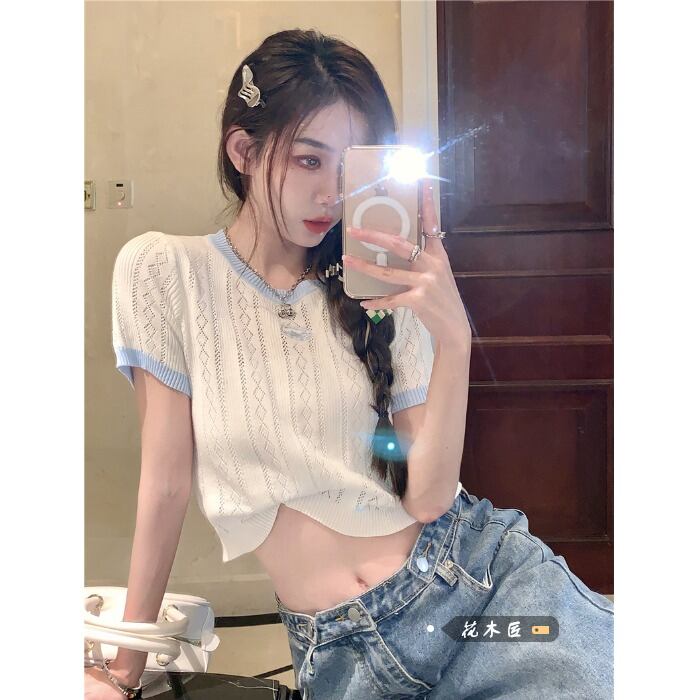 カラー薄手ショートTシャツ サマースリムラウンドネックトップス 大人ガーリー スウィート キュート カジュアル 夏物 Oネック 10/5 秋冬 オータム ウインター ナチュラル mi4654645498451