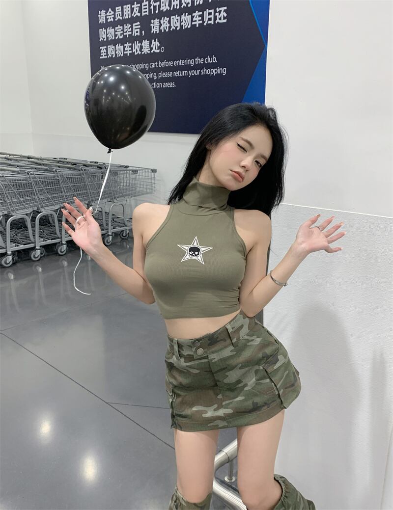 色:迷彩スカートワンピース,アーミーグリーンベスト,迷彩レッグソックス