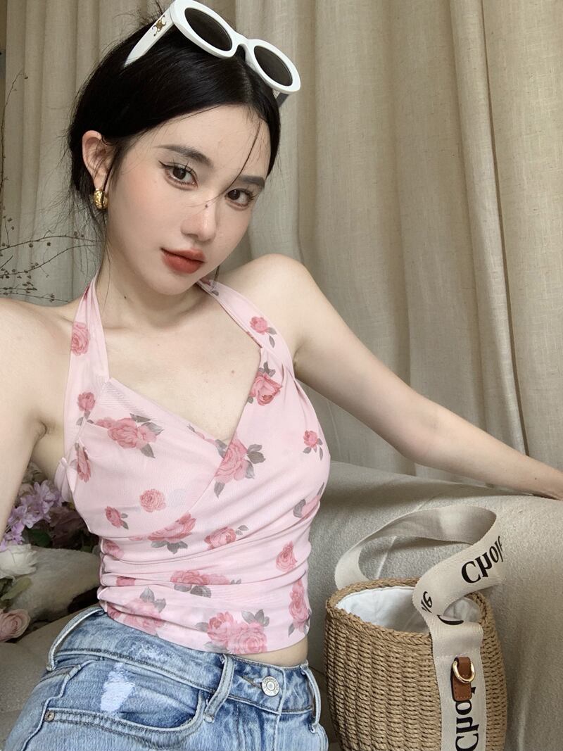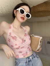 フローラルホルターサマーバックスリムVネックショートトップス 夏物 花柄 10/5 秋冬 オータム ウインター ナチュラル mi464205163934