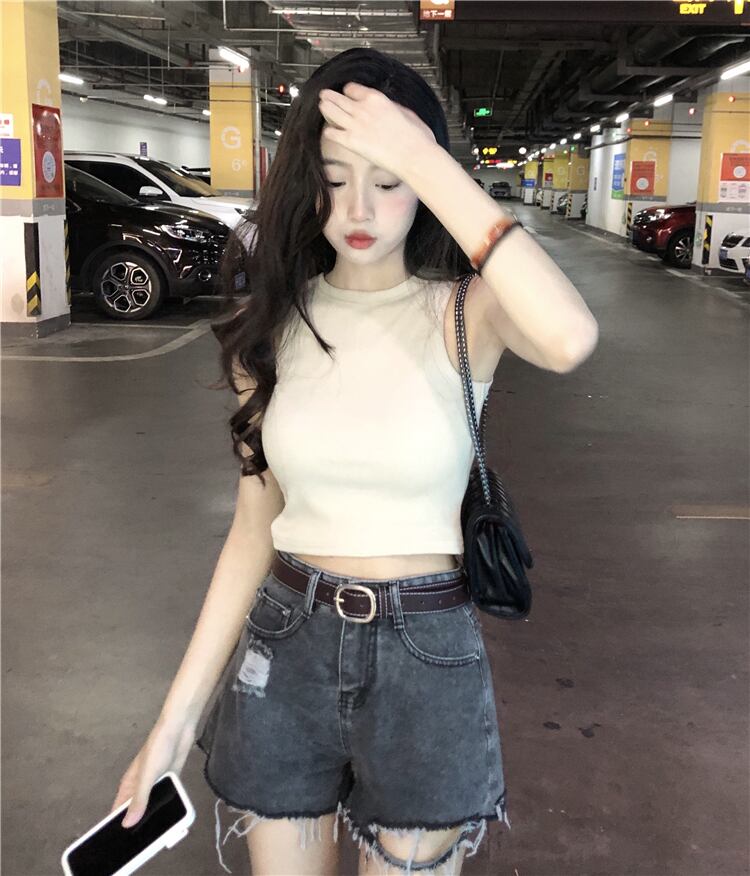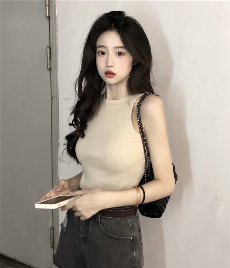 ノースリーブサマースリム薄手ショートトップス 大人ガーリー スウィート キュート カジュアル 夏物 ピュア 10/5 秋冬 オータム ウインター ナチュラル mi4646848548265