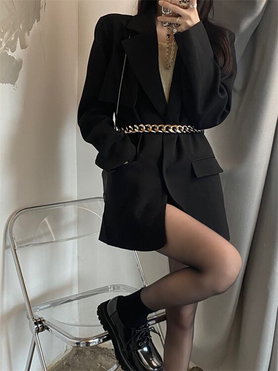 色:ブラックジャケットワンピース,シングルブラックベルト