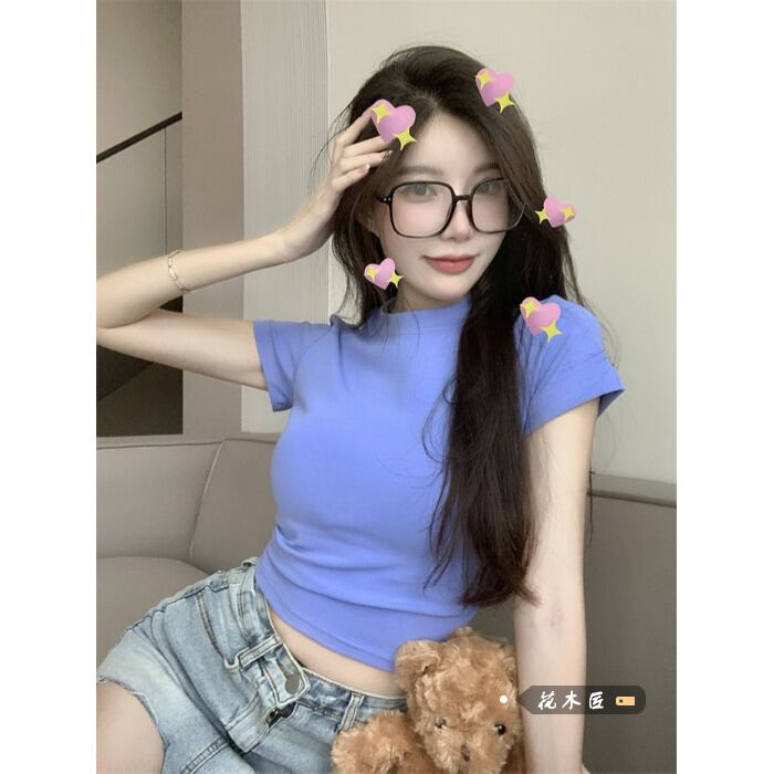 ソリッド カラーショートTシャツ サマースリムトップス 夏物 ソリッドカラー 10/5 秋冬 オータム ウインター ナチュラル mi4631932194453