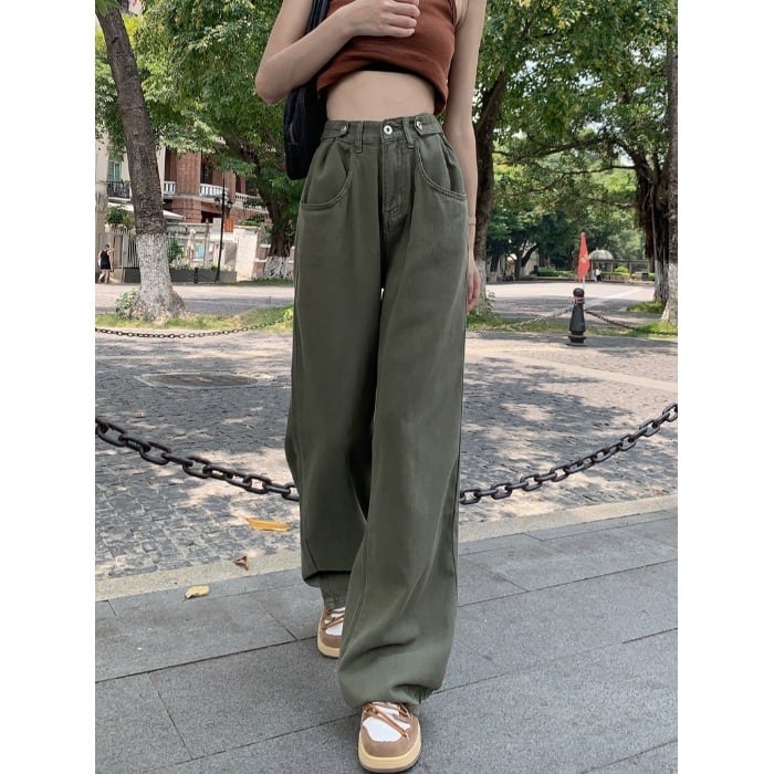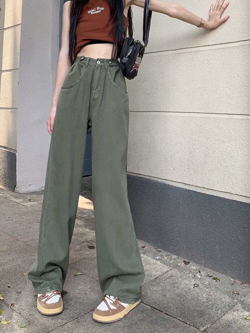 スタンダードグリーンジーンズ オータムルーズパンツ ハイウェスト薄手 レトロ 秋物 10/5 秋冬 オータム ウインター ナチュラル mi4610224621599