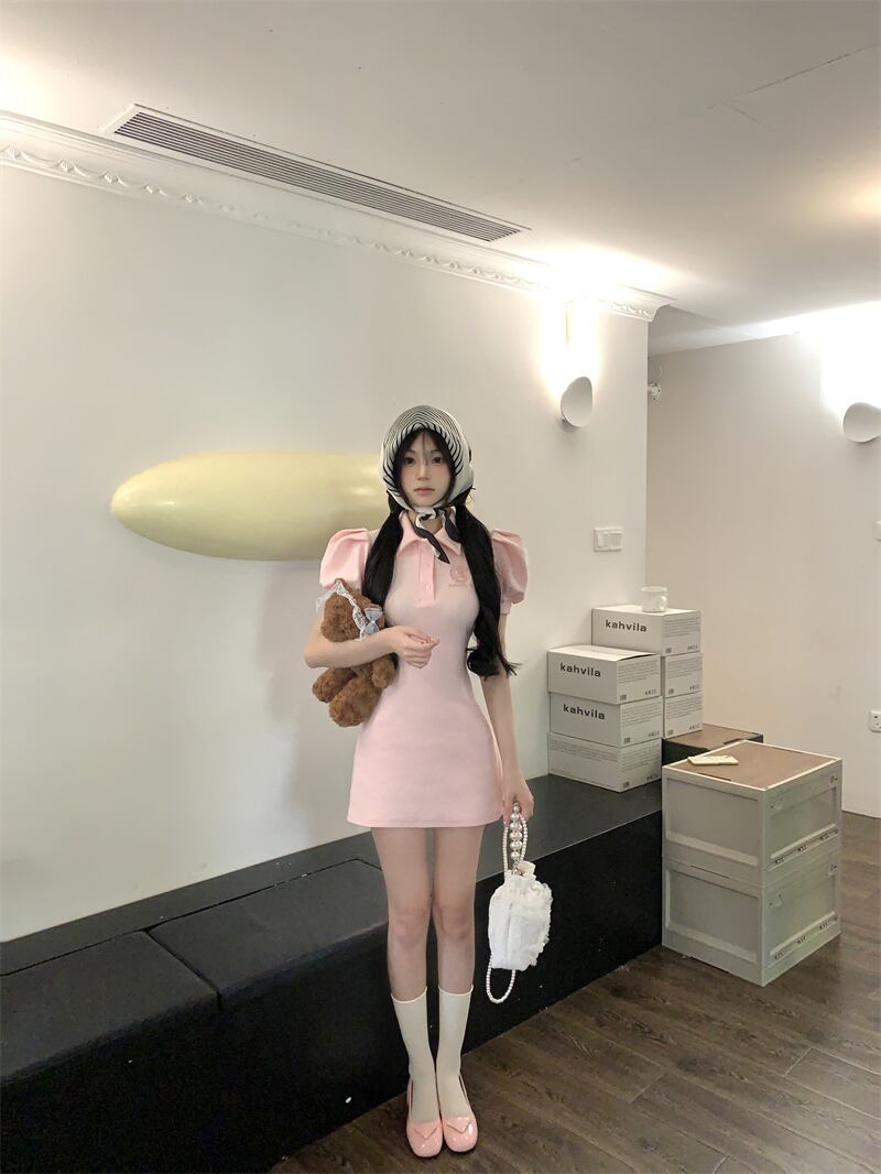 カラースリーブドレス サマーウェストスカート ピンク 大人ガーリー スウィート キュート カジュアル 夏物 ピュア 10/5 秋冬 オータム ウインター ナチュラル mi4685087148384