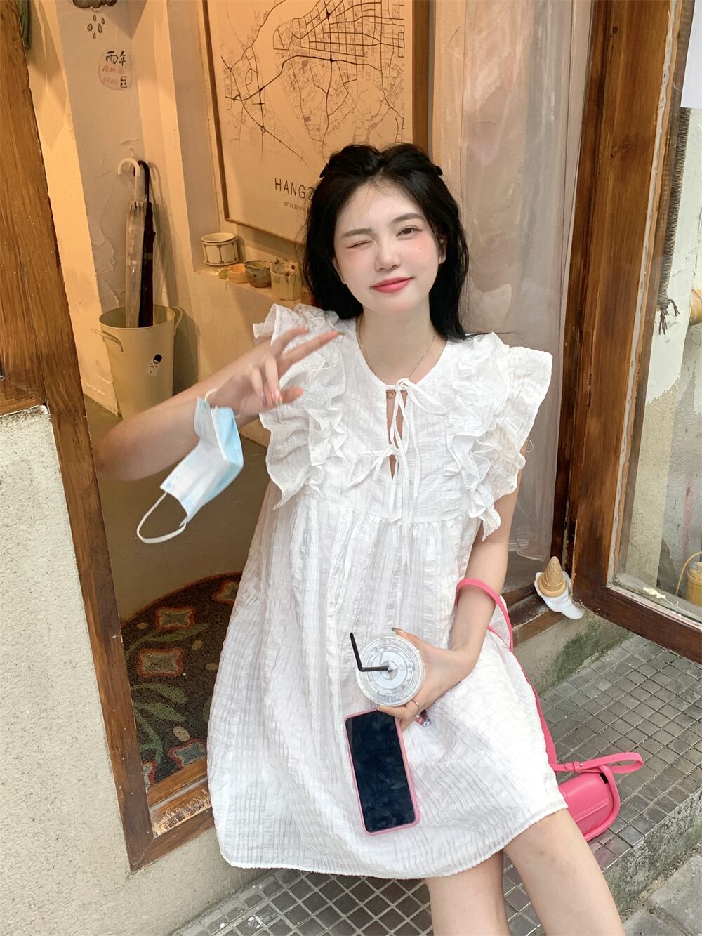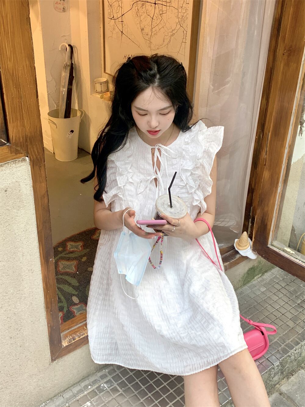 スリーブホワイトドレス サマースカート ショート 大人ガーリー スウィート キュート カジュアル 夏物 10/5 秋冬 オータム ウインター ナチュラル mi4682446222704