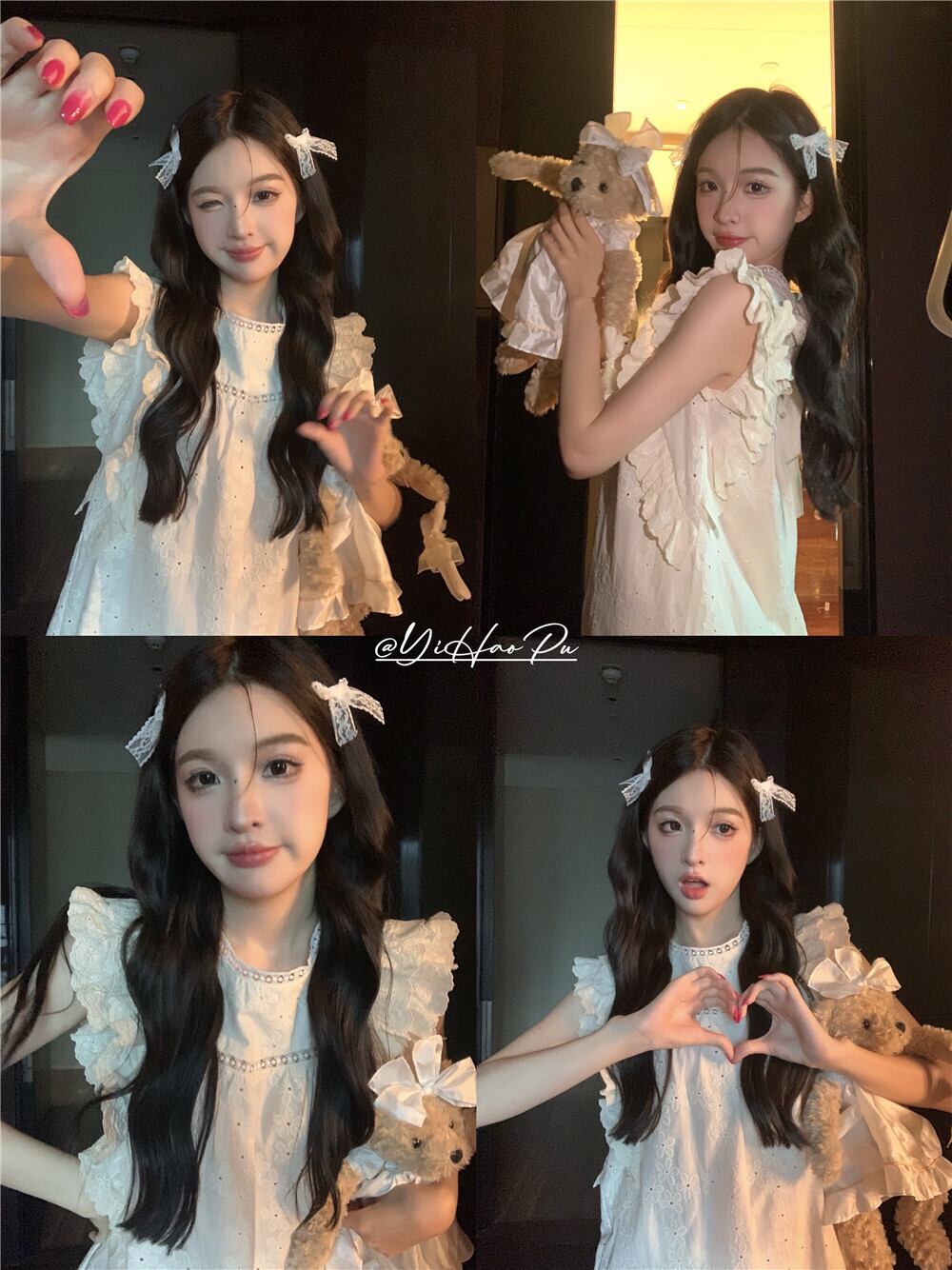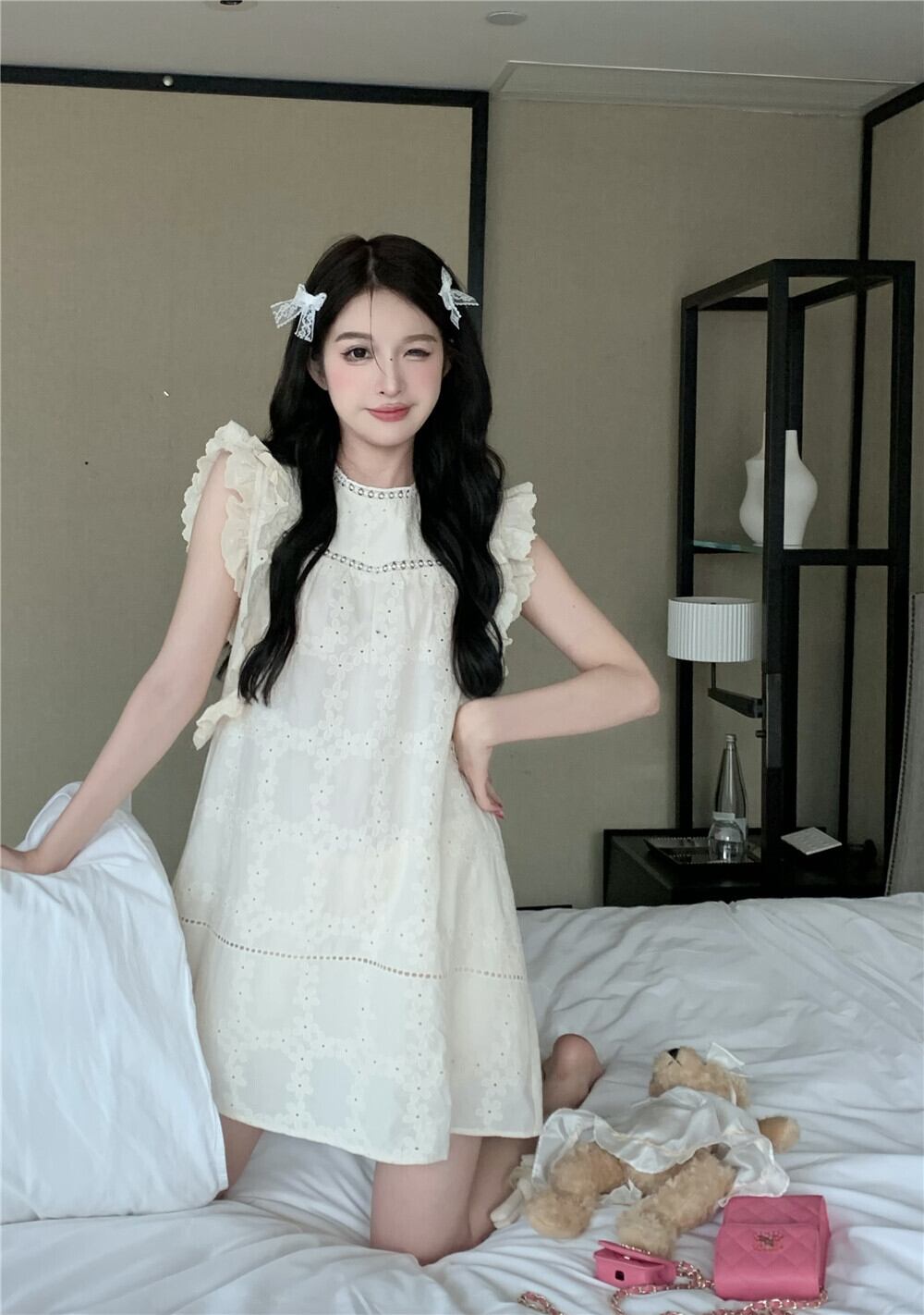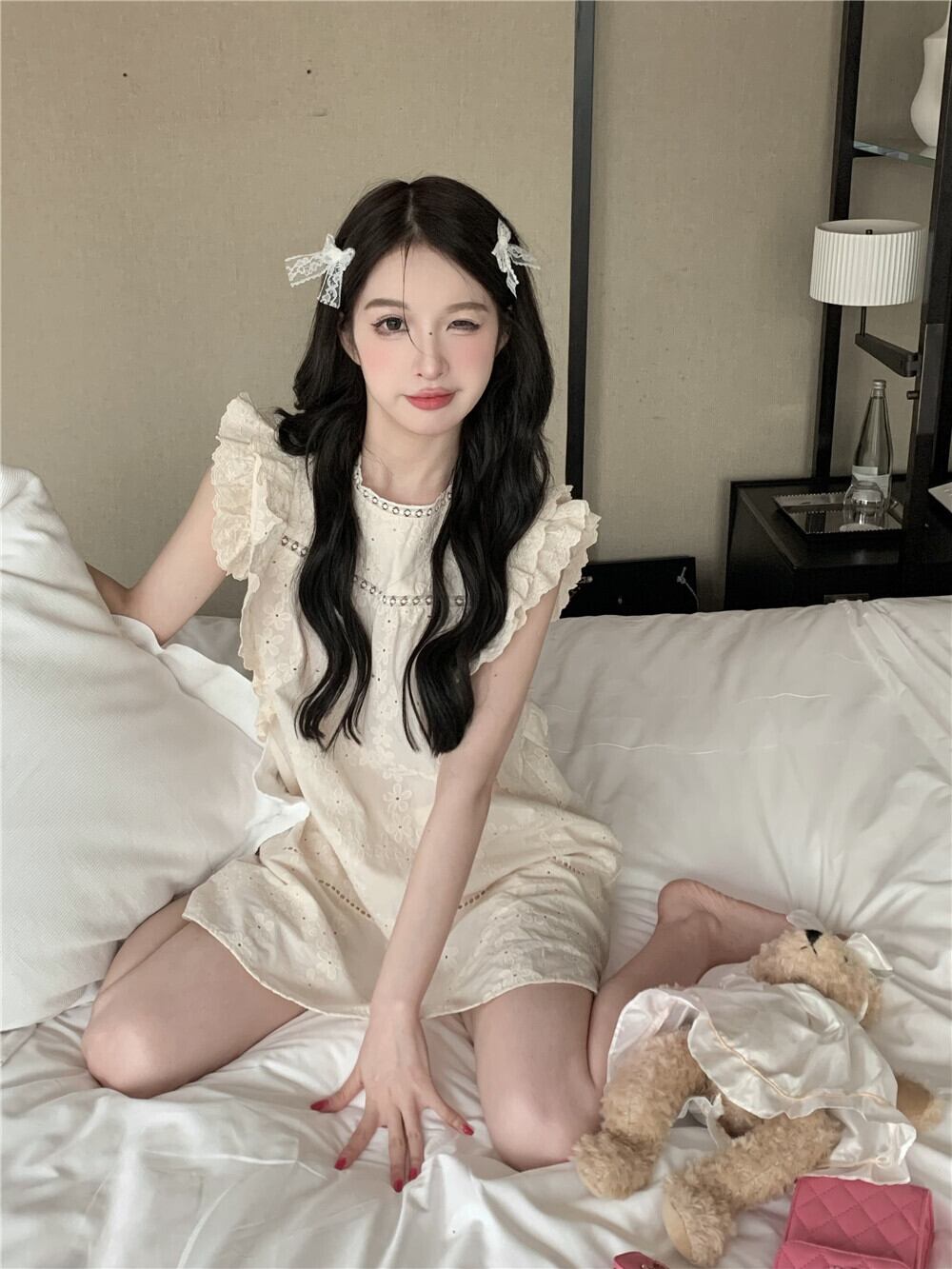刺繍スリーブドレス サマーレースルーズショートスカート 大人ガーリー スウィート キュート カジュアル 夏物 フラワーデザイン 10/5 秋冬 オータム ウインター ナチュラル mi4667633522316