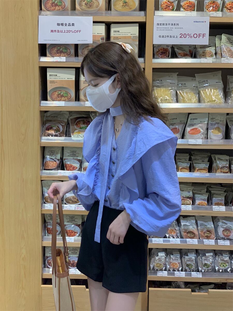シャツ オータムスリーブ薄手トップス ランタンスリーブ レース 秋物 レースアップ 10/5 秋冬 オータム ウインター ナチュラル mi4610010851947