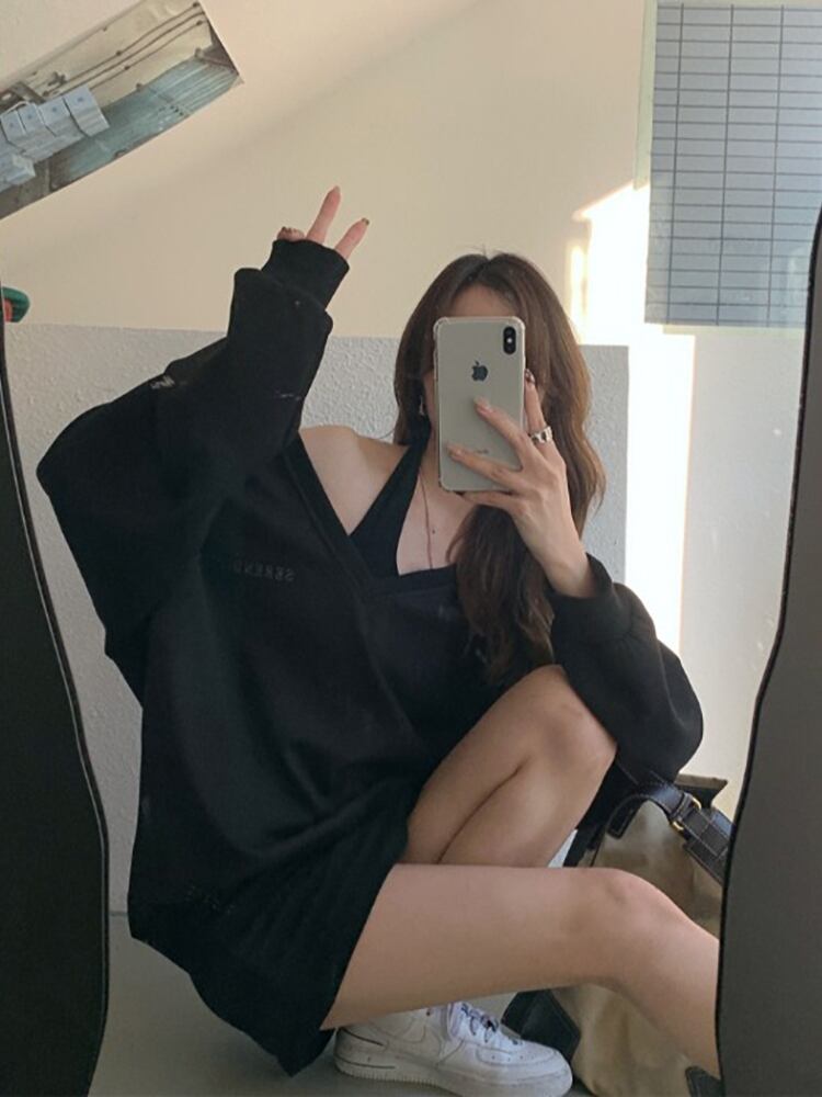 スタイルセーター オータムVネックルーズトップス ロング 秋物 10/5 秋冬 オータム ウインター ナチュラル mi4632003839191