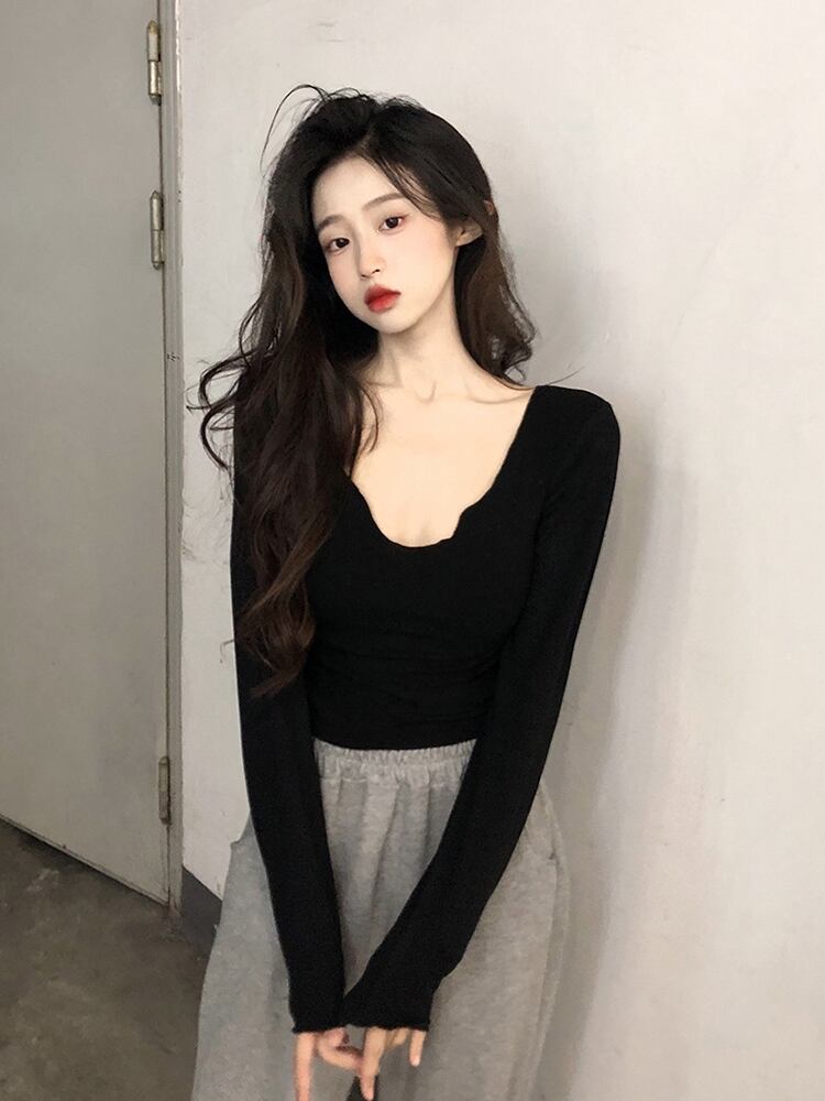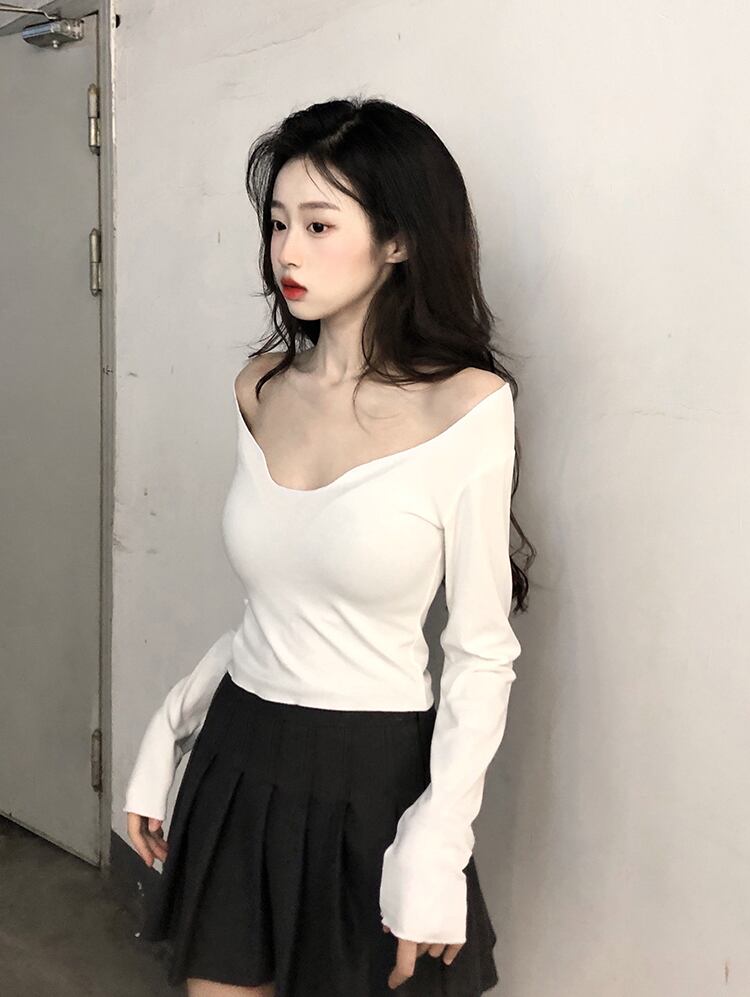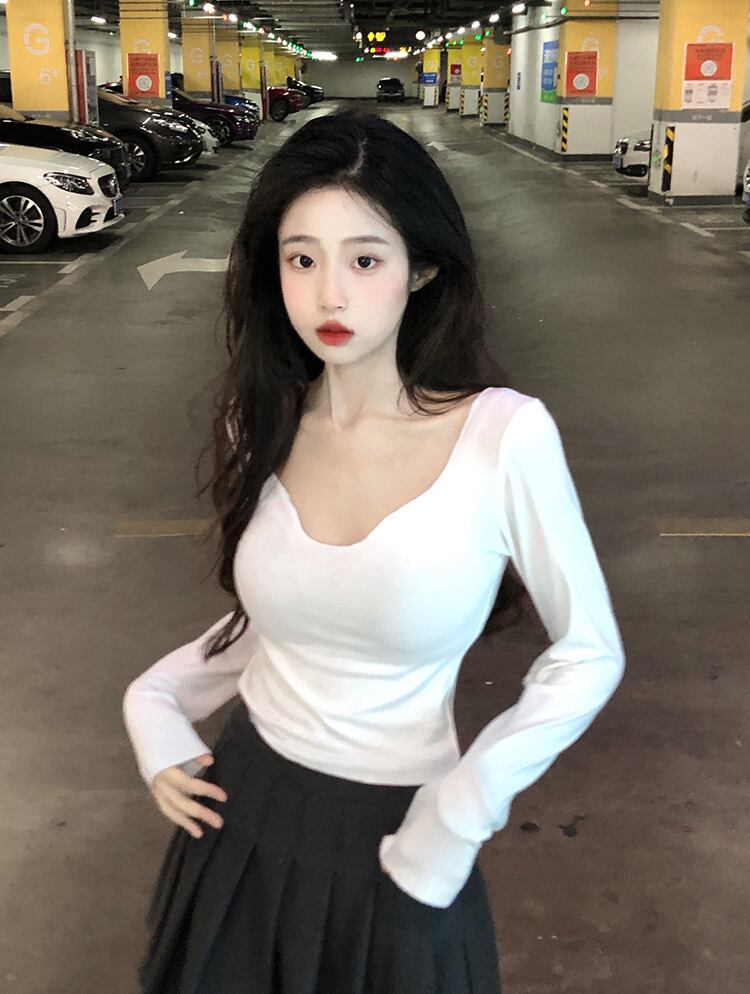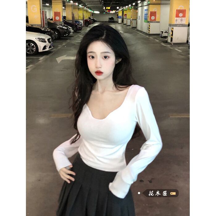 スタイルホワイトVネックTシャツ オータム薄手トップス ロング 秋物 10/5 秋冬 オータム ウインター ナチュラル mi465071153362