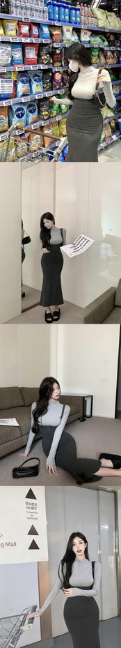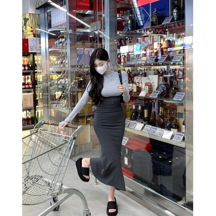 色:グレーのボトミングシャツ,ダークピンクのボトミングシャツ,ダークグレーのサスペンダースカート,Ceeカラーストラップドレス