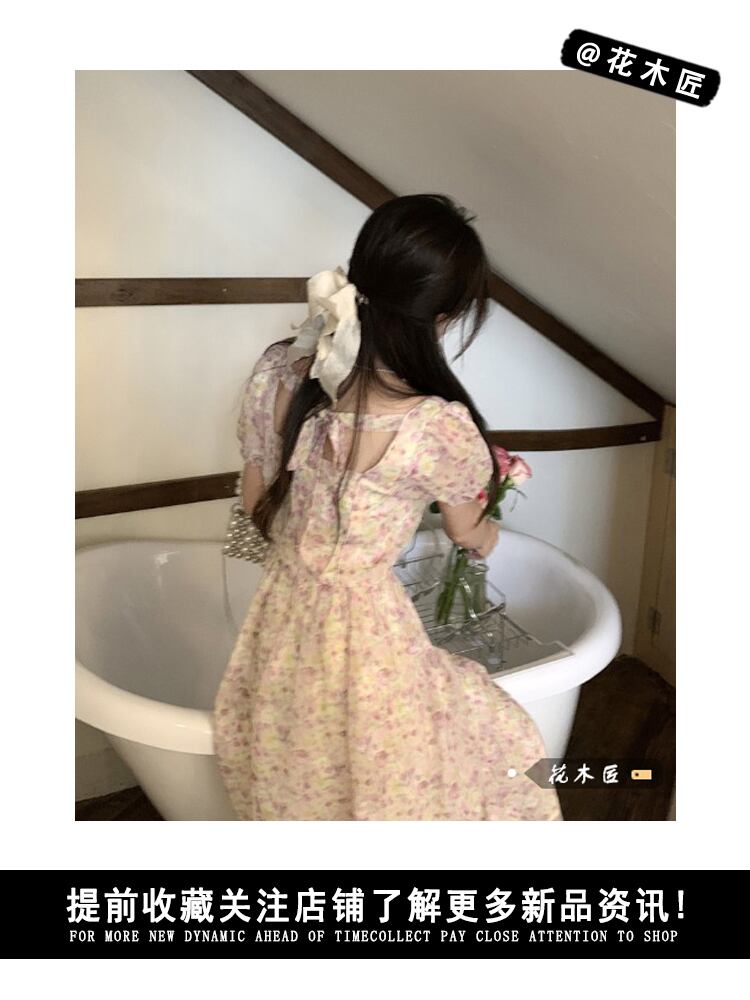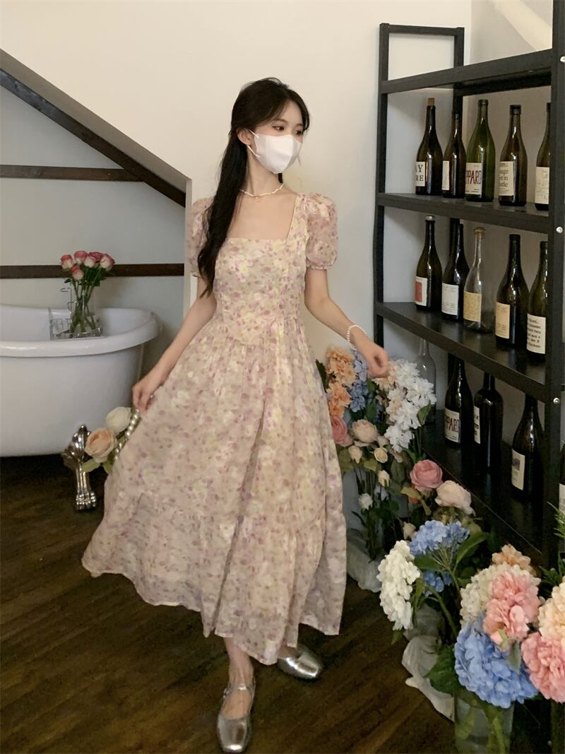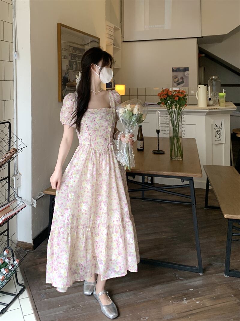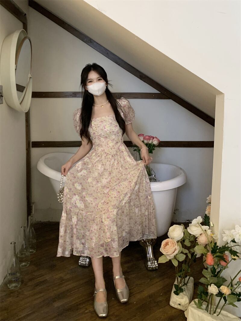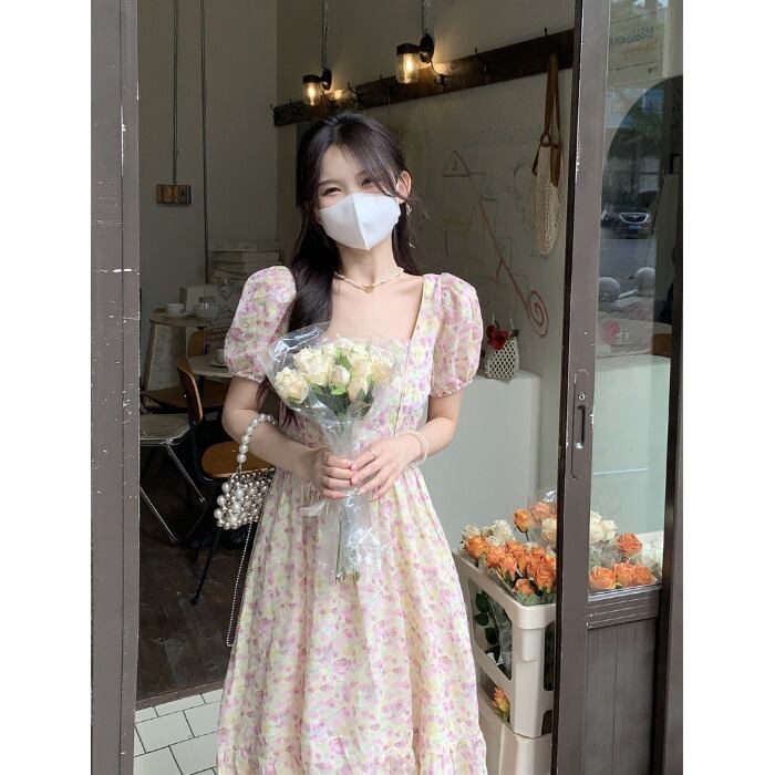 スタイルフローラルドレス サマーウェストAラインスカート 大人ガーリー スウィート キュート カジュアル 夏物 花柄 スクウェア 10/5 秋冬 オータム ウインター ナチュラル mi4647330747001