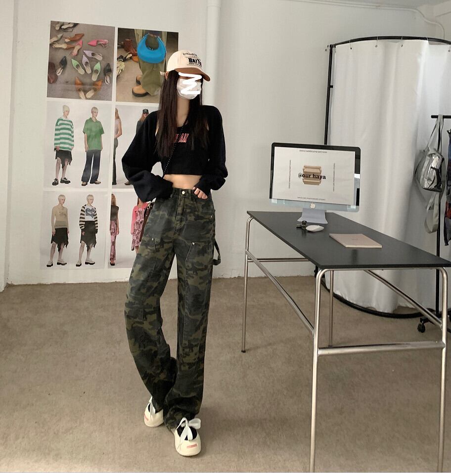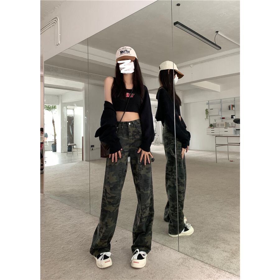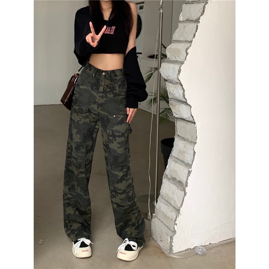 スタンダード迷彩柄カジュアルジーンズ オータムハイウェストスリムパンツ レトロ ストリート 秋物 10/5 秋冬 オータム ウインター ナチュラル mi4657771069399