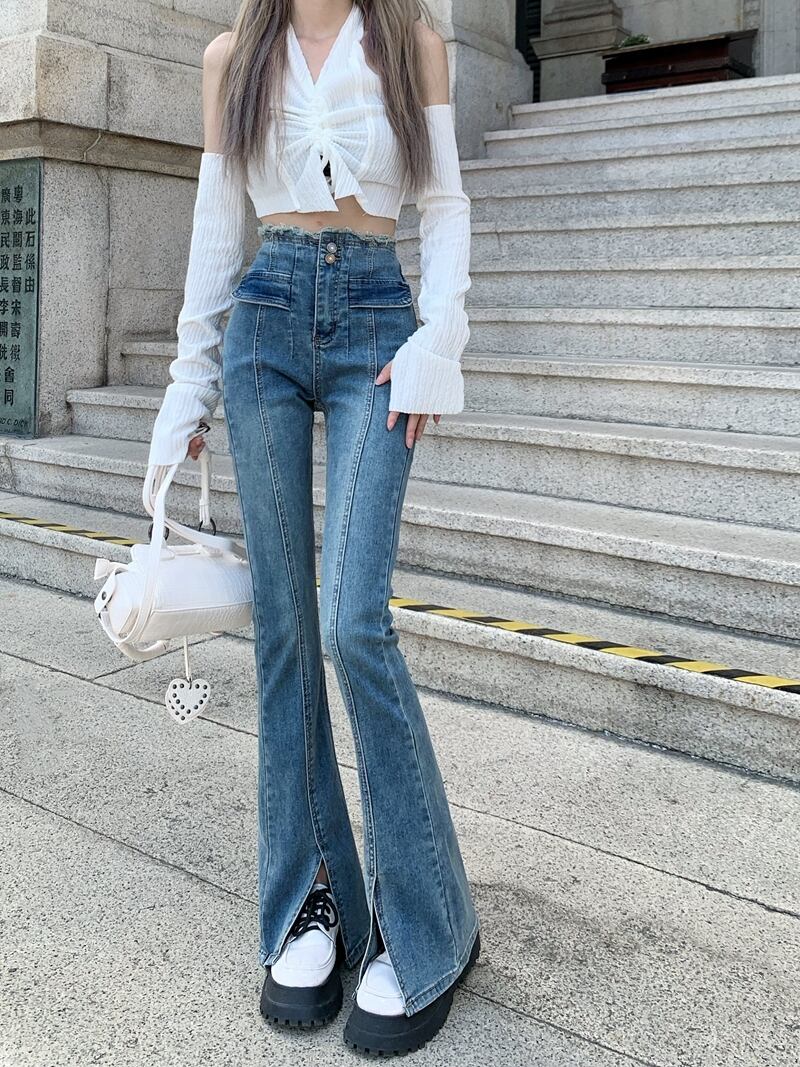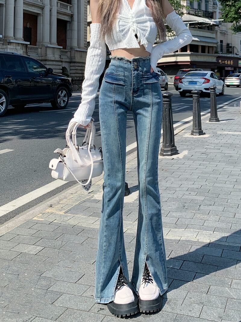 パンツ オータムハイウェストウェストジーンズ レッド 秋物 10/5 秋冬 オータム ウインター ナチュラル mi4654883724417