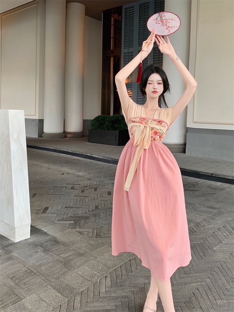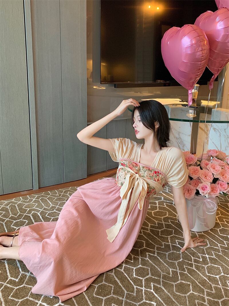 自然派スタイルフローラルドレス サマーバンドウェストスカート 夏物 花柄 10/5 秋冬 オータム ウインター ナチュラル mi4671660881086