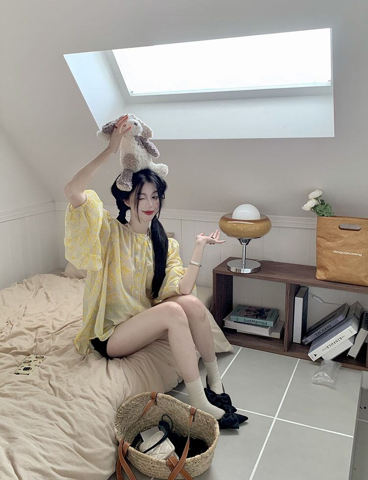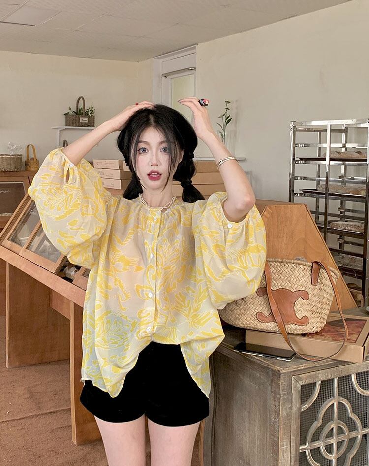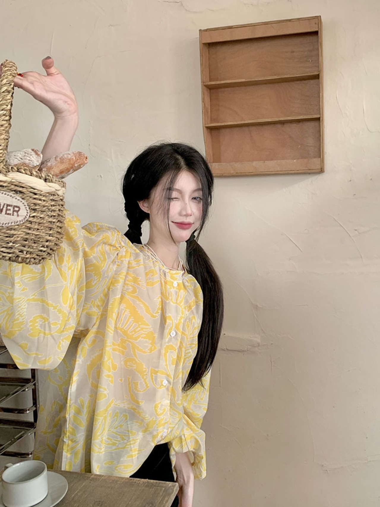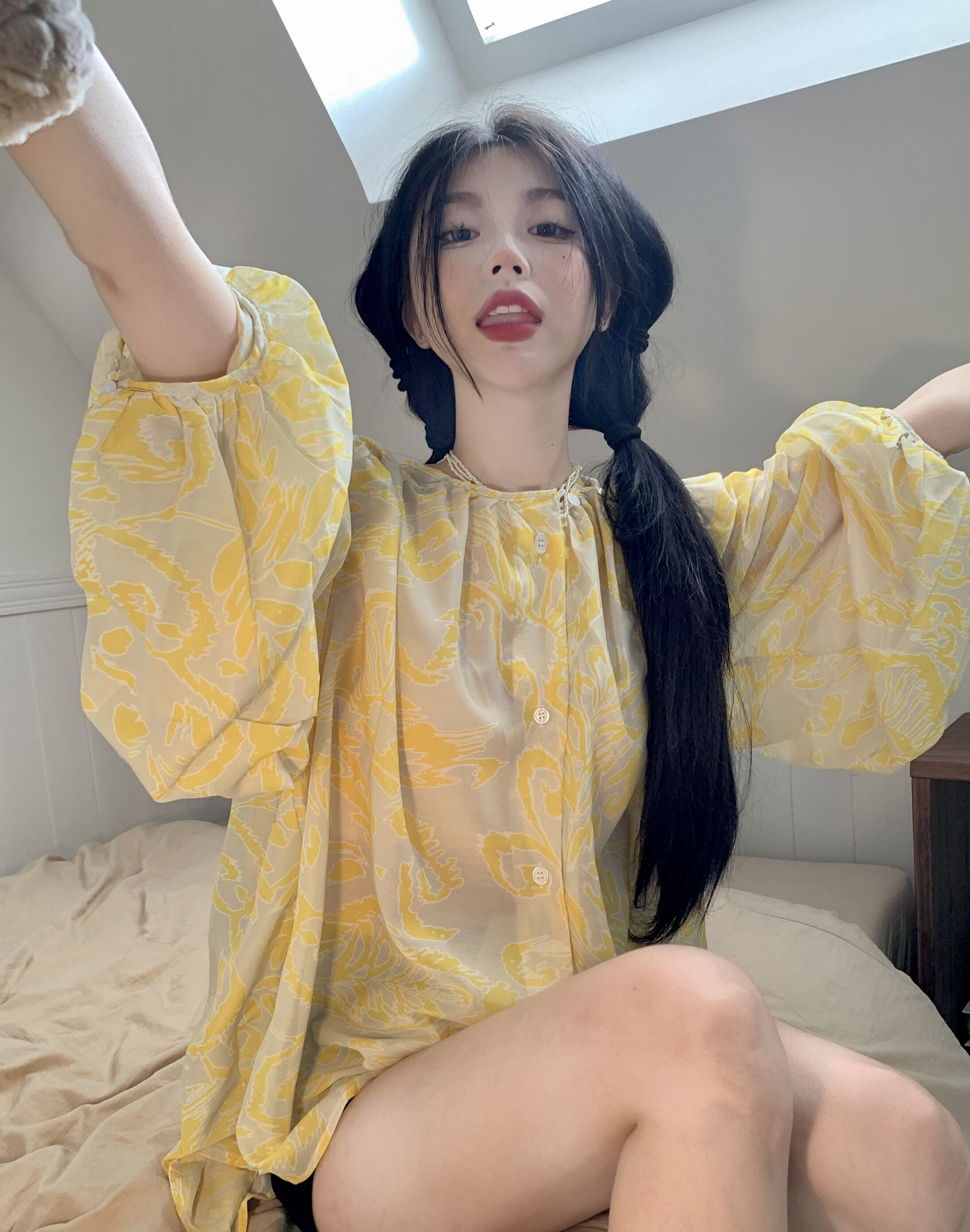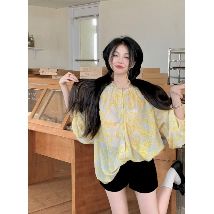 フローラル薄手スリーブシャツ オータムルーズトップス ランタンスリーブ 秋物 花柄 10/5 秋冬 オータム ウインター ナチュラル mi4658259690367
