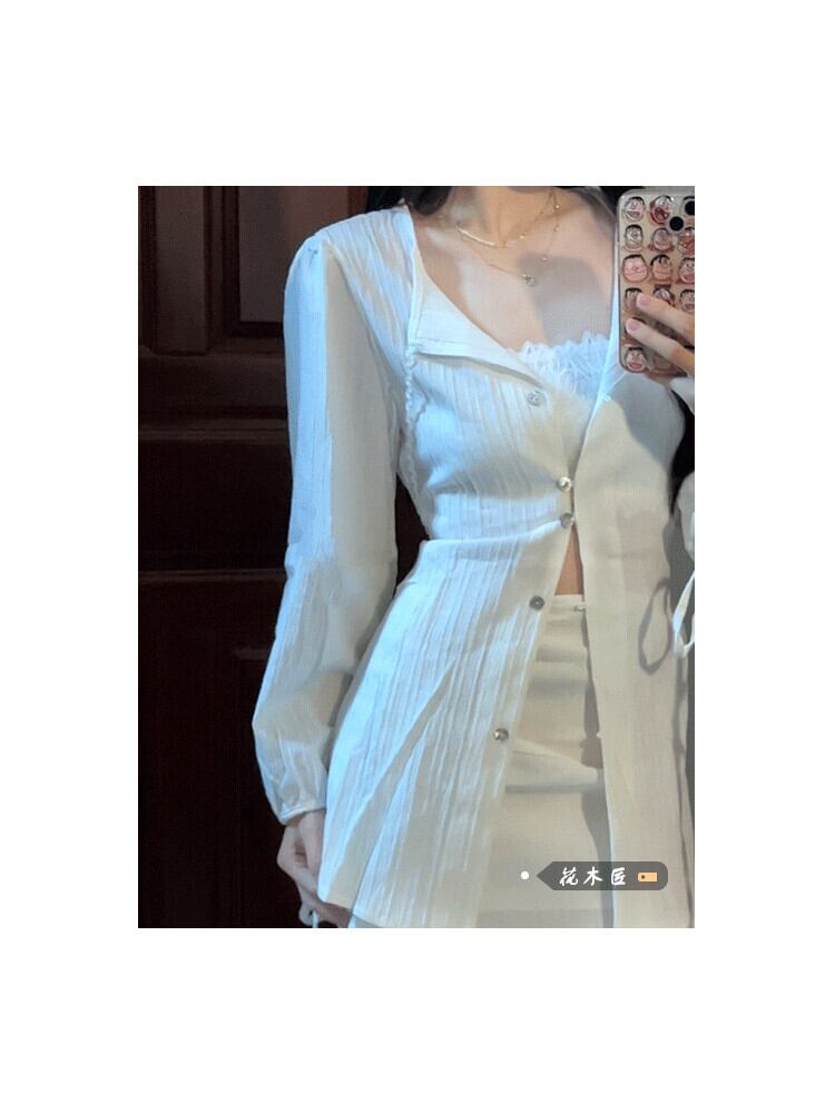 スタイルオータムシャツ プリーツスカート セット レース 秋物 レースアップ ピュア 10/5 秋冬 オータム ウインター ナチュラル mi467031558484