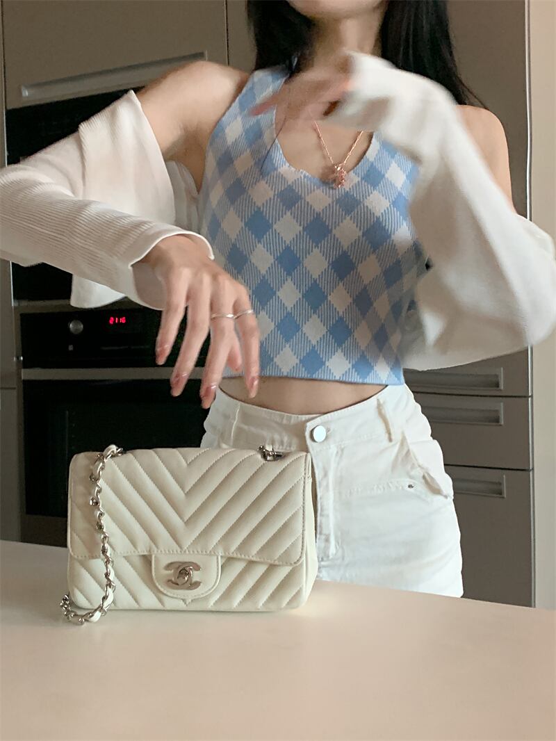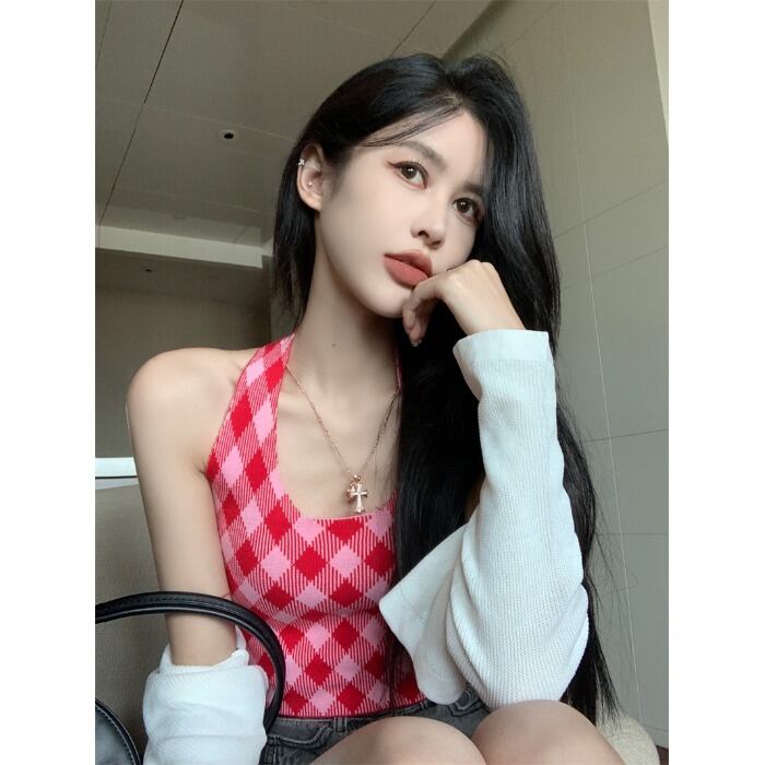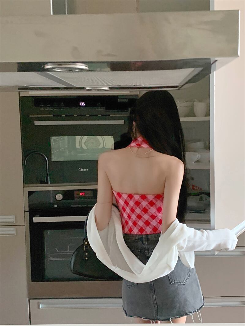 バックレス格子柄ホルターオータムショートトップス 秋物 10/5 秋冬 オータム ウインター ナチュラル mi4673200262260