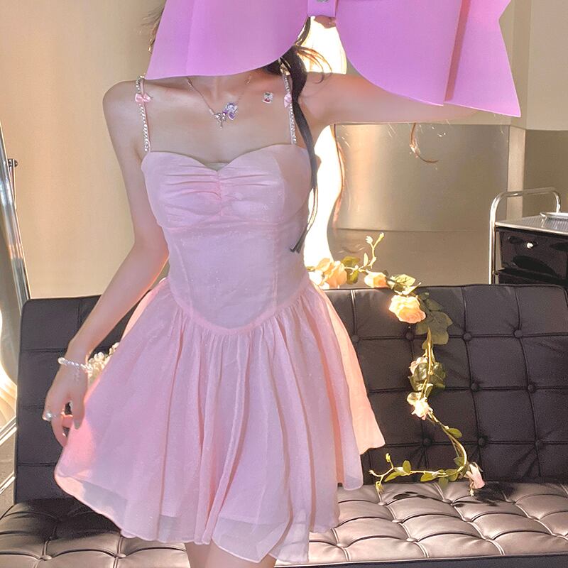 ドレス サマーウェスト薄手スカート ピンク 大人ガーリー スウィート キュート カジュアル 夏物 10/5 秋冬 オータム ウインター ナチュラル mi4676428113015
