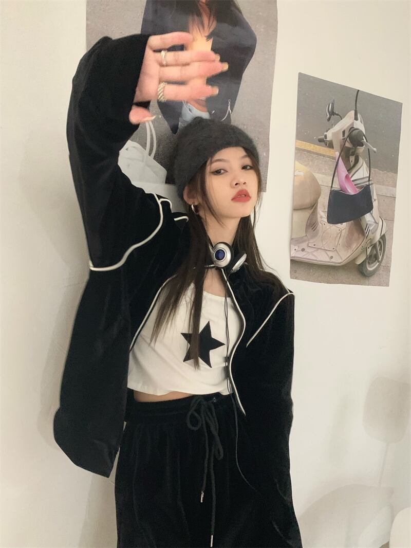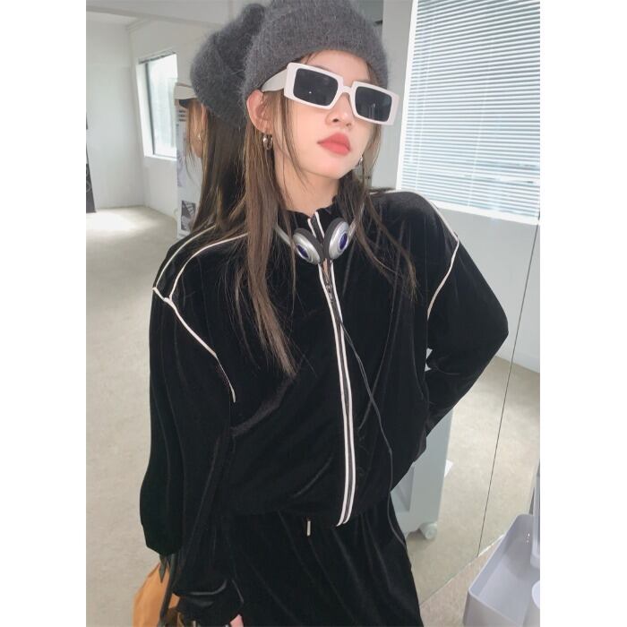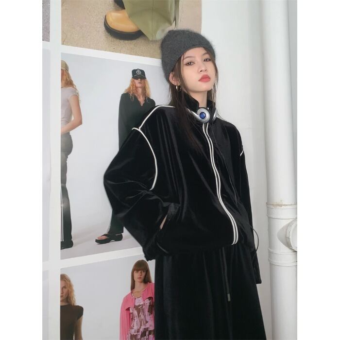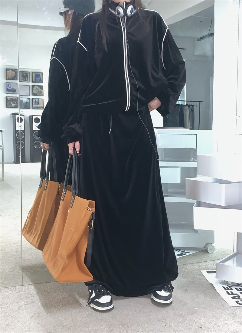 オータムルーズベルベットジャケット スカート セット ストリート 秋物 10/5 秋冬 オータム ウインター ナチュラル mi4685955120785