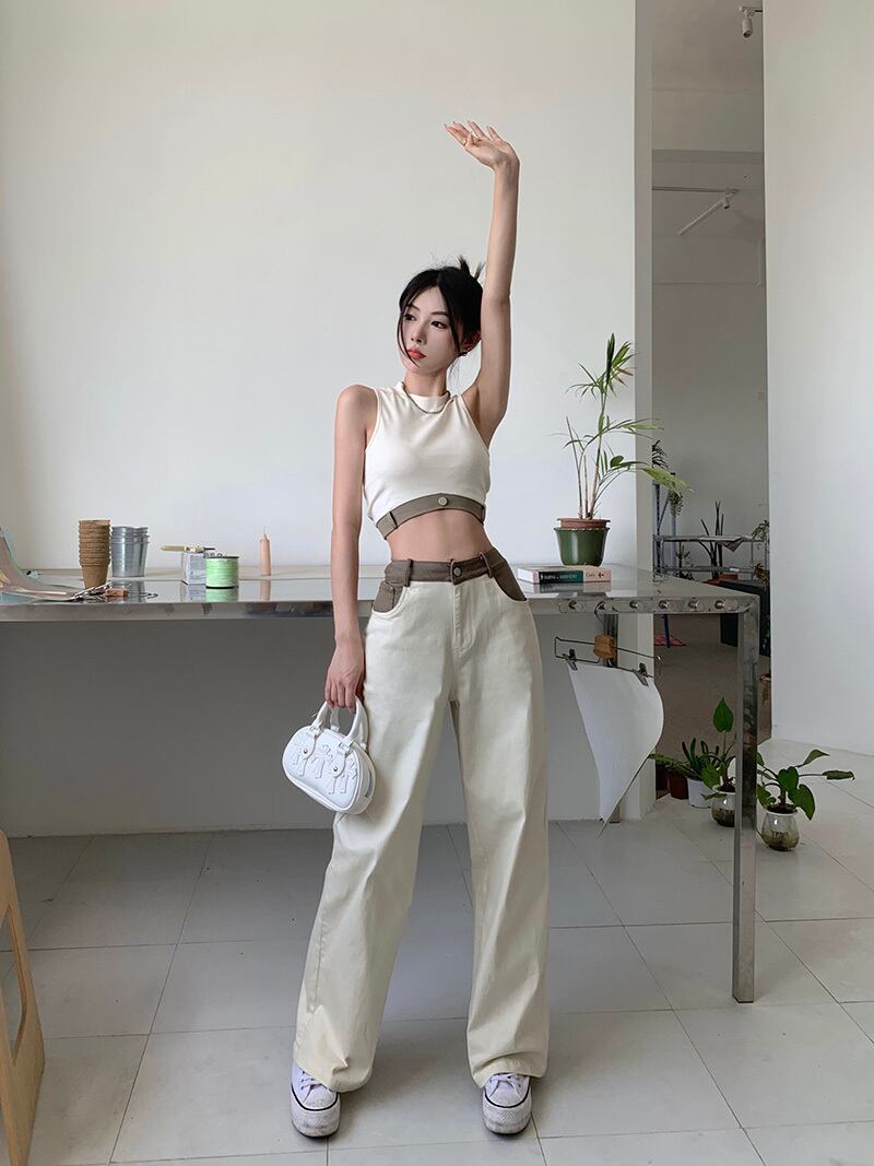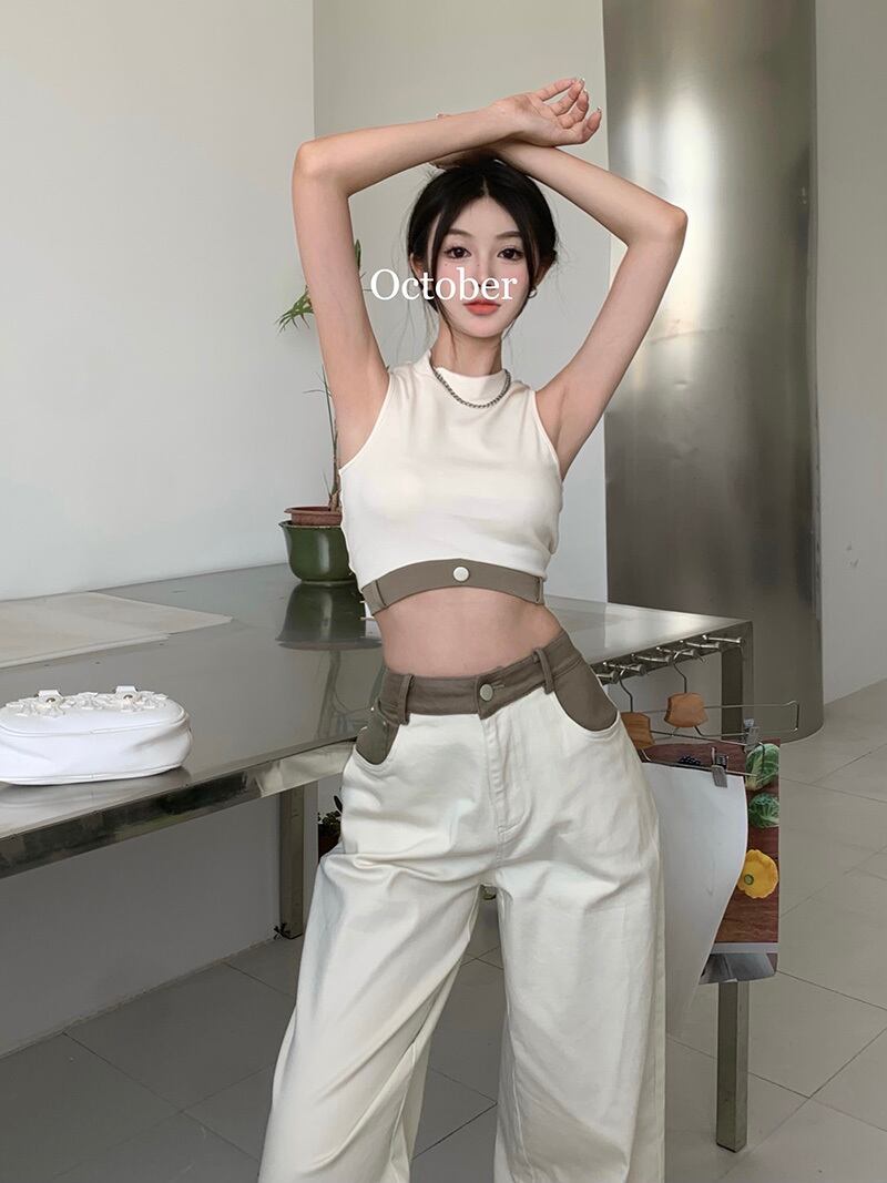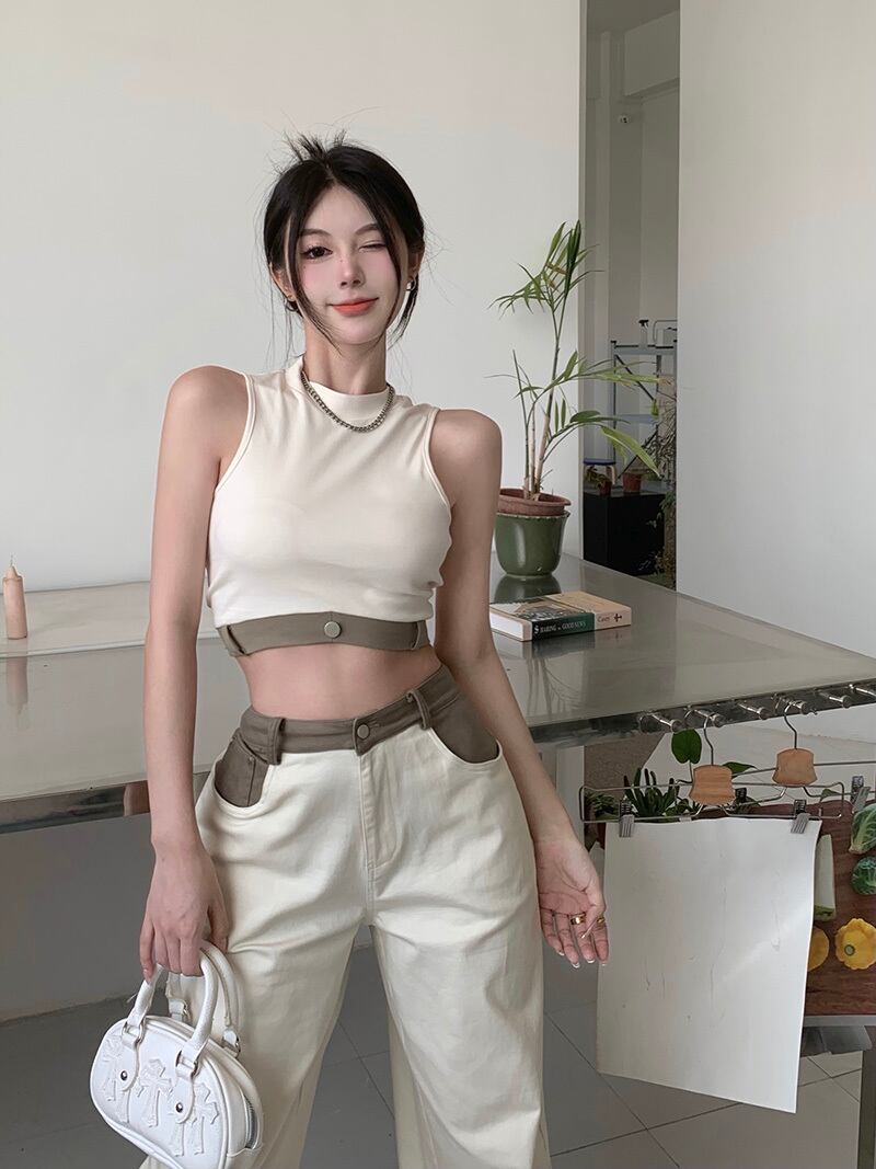 カラーノースリーブサマースタイルスリムショートトップス 夏物 10/5 秋冬 オータム ウインター ナチュラル mi4658197813989