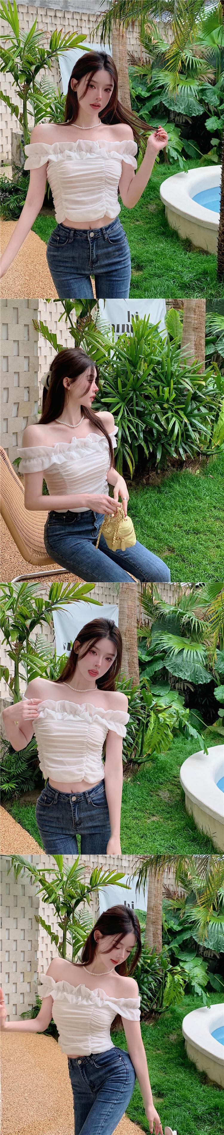シャツ サマースリムプリーツメッシュショートトップス 夏物 10/5 秋冬 オータム ウインター ナチュラル mi462376007863