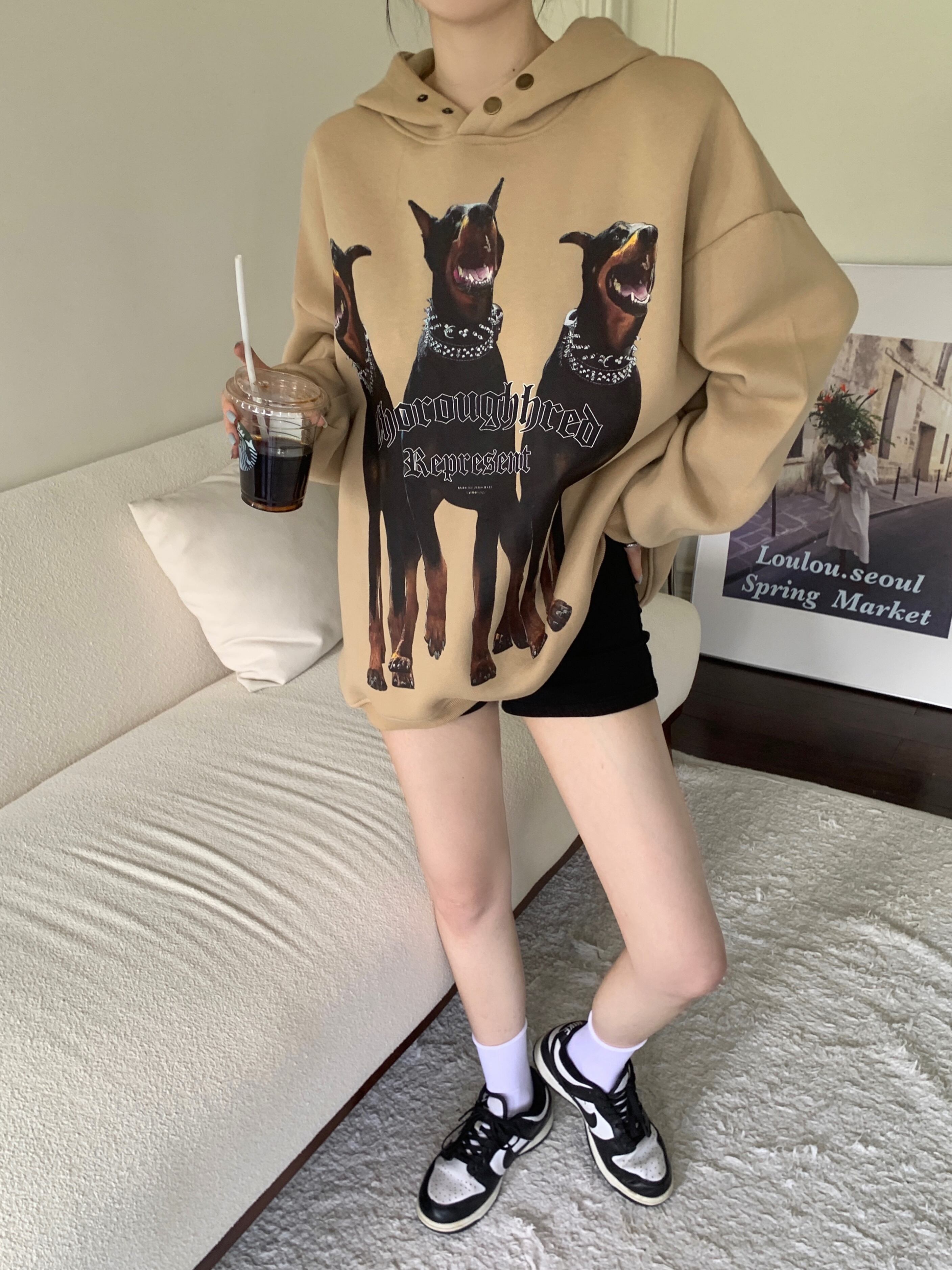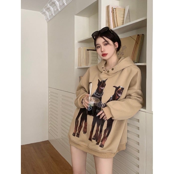 プリント柄フードセーター オータムルーズトップス 秋物 10/5 秋冬 オータム ウインター ナチュラル mi4668191541188