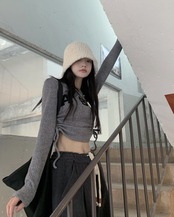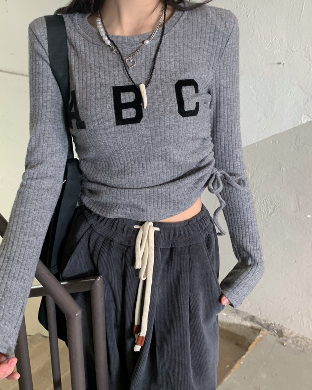 プリント柄ニットTシャツ シャツ オータムスリムフィットショートトップス ロング 秋物 10/5 秋冬 オータム ウインター ナチュラル mi4648453702814