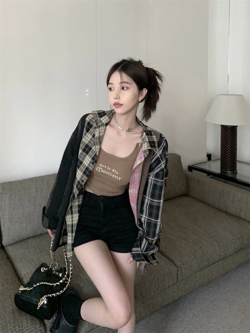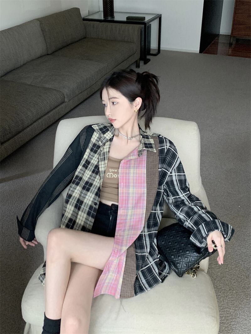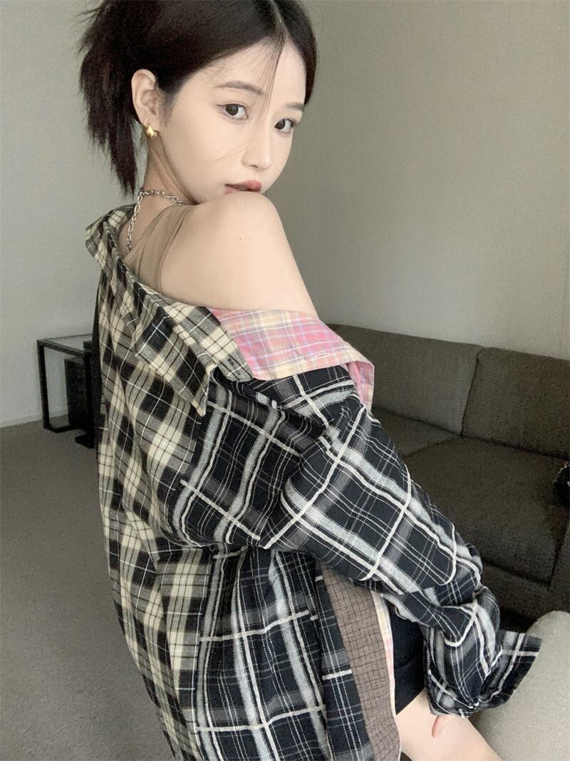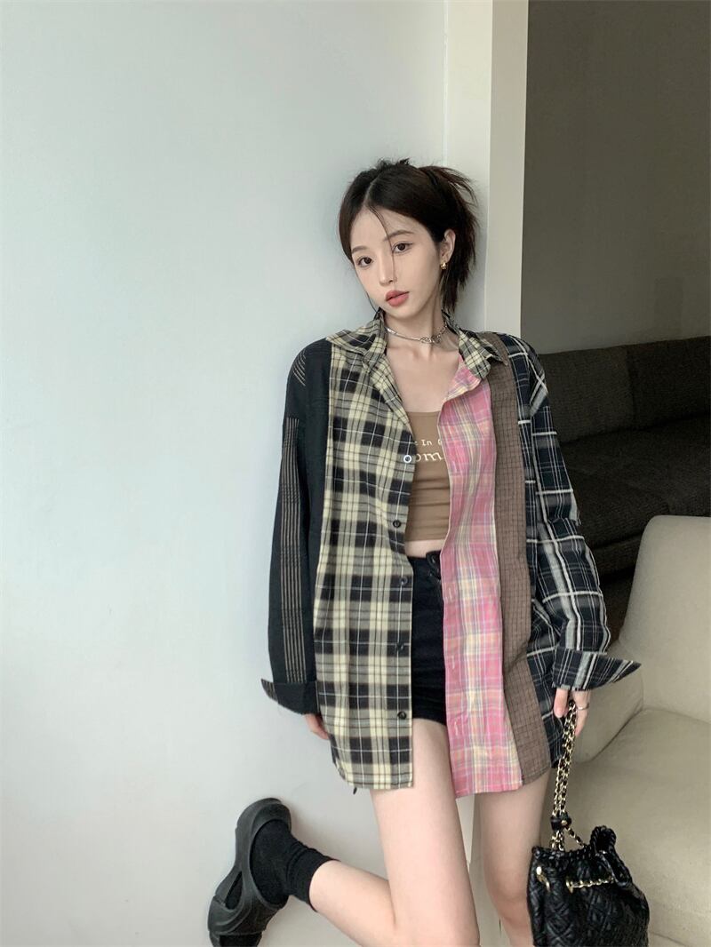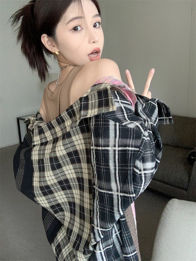 スタンダード格子柄シャツ ジャケット オータムルーズ薄手トップス ロング レトロ 秋物 ステッチ 10/5 秋冬 オータム ウインター ナチュラル mi4694548687695